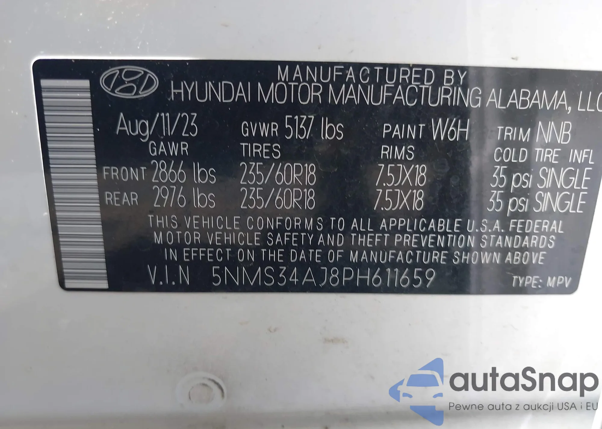 • VIN 5NMS34AJ8PH611659