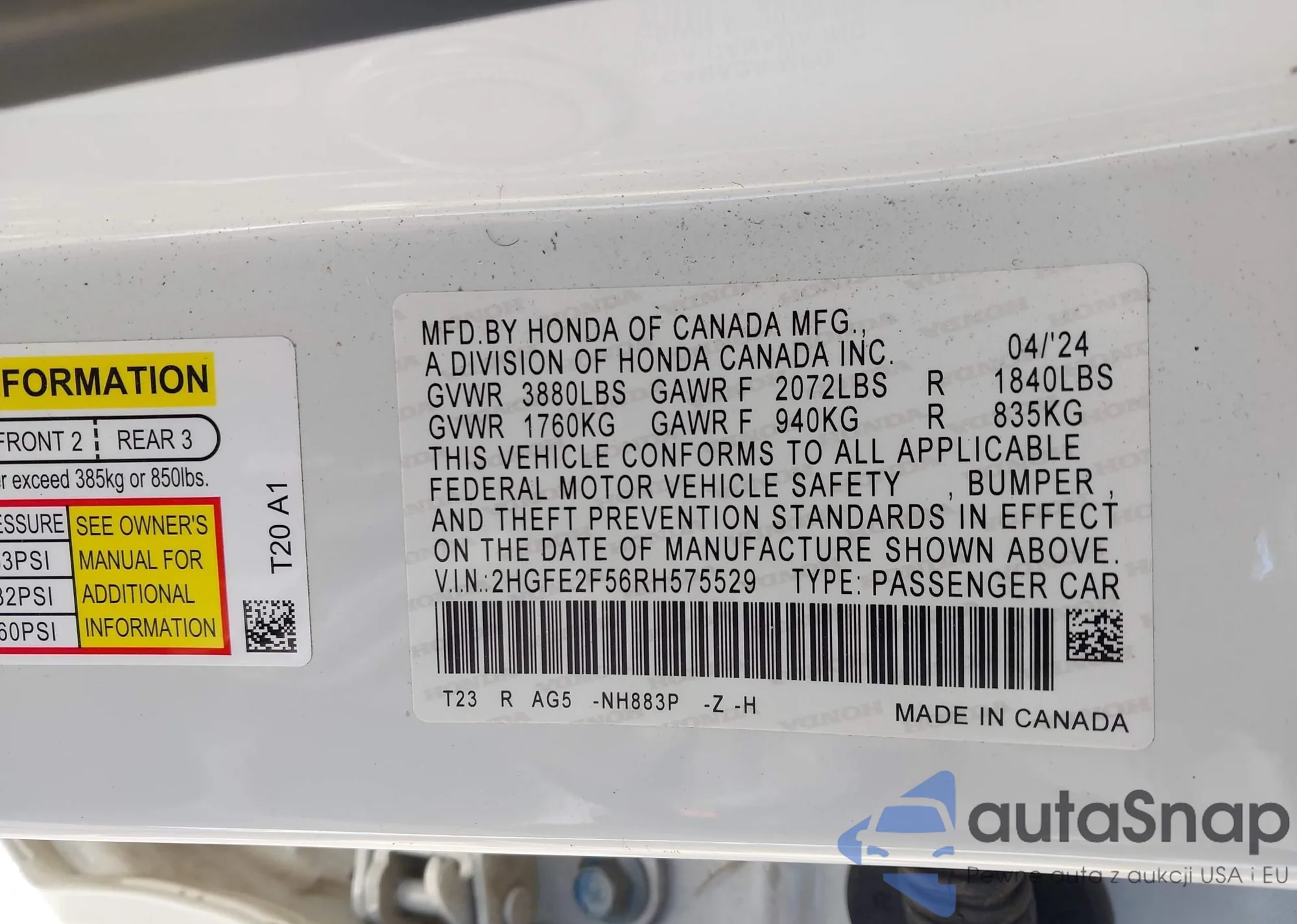 LOT: 41601834 VIN: 2HGFE2F56RH575529