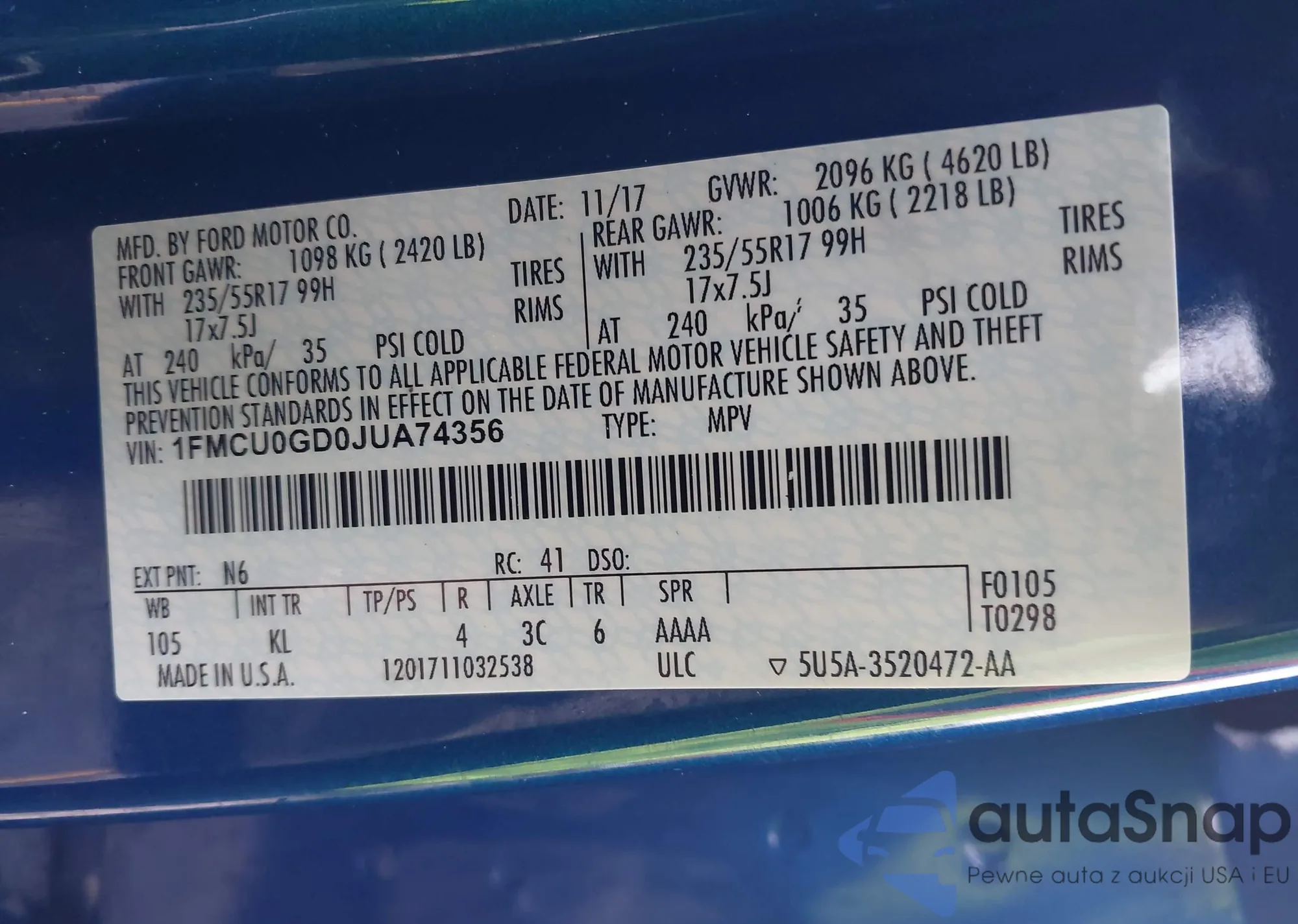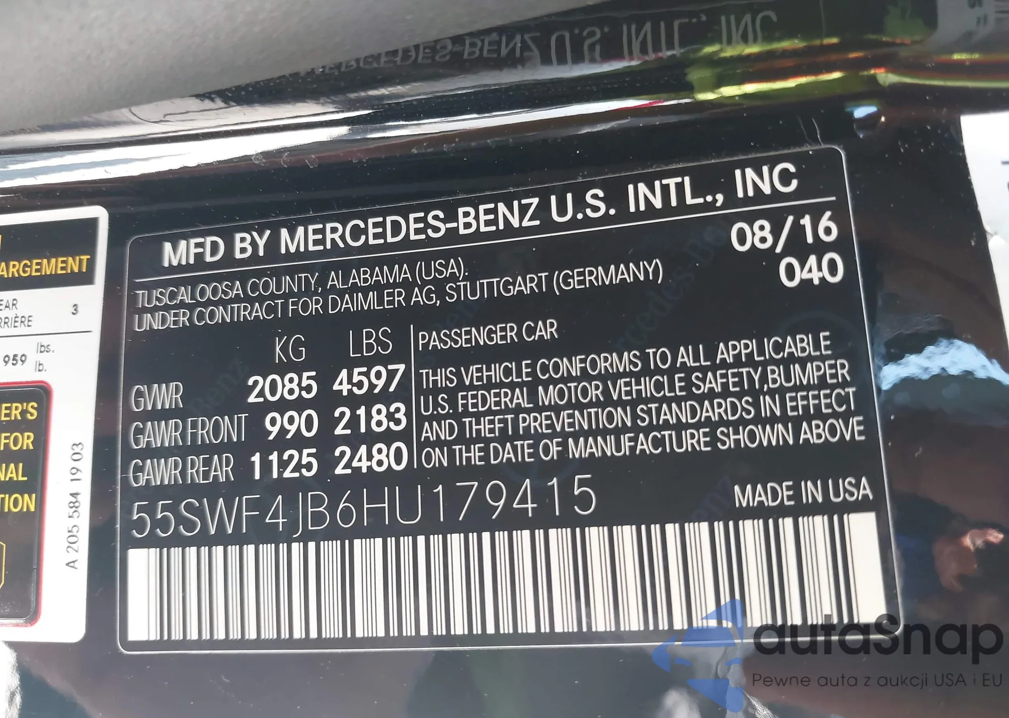 • VIN 55SWF4JB6HU179415