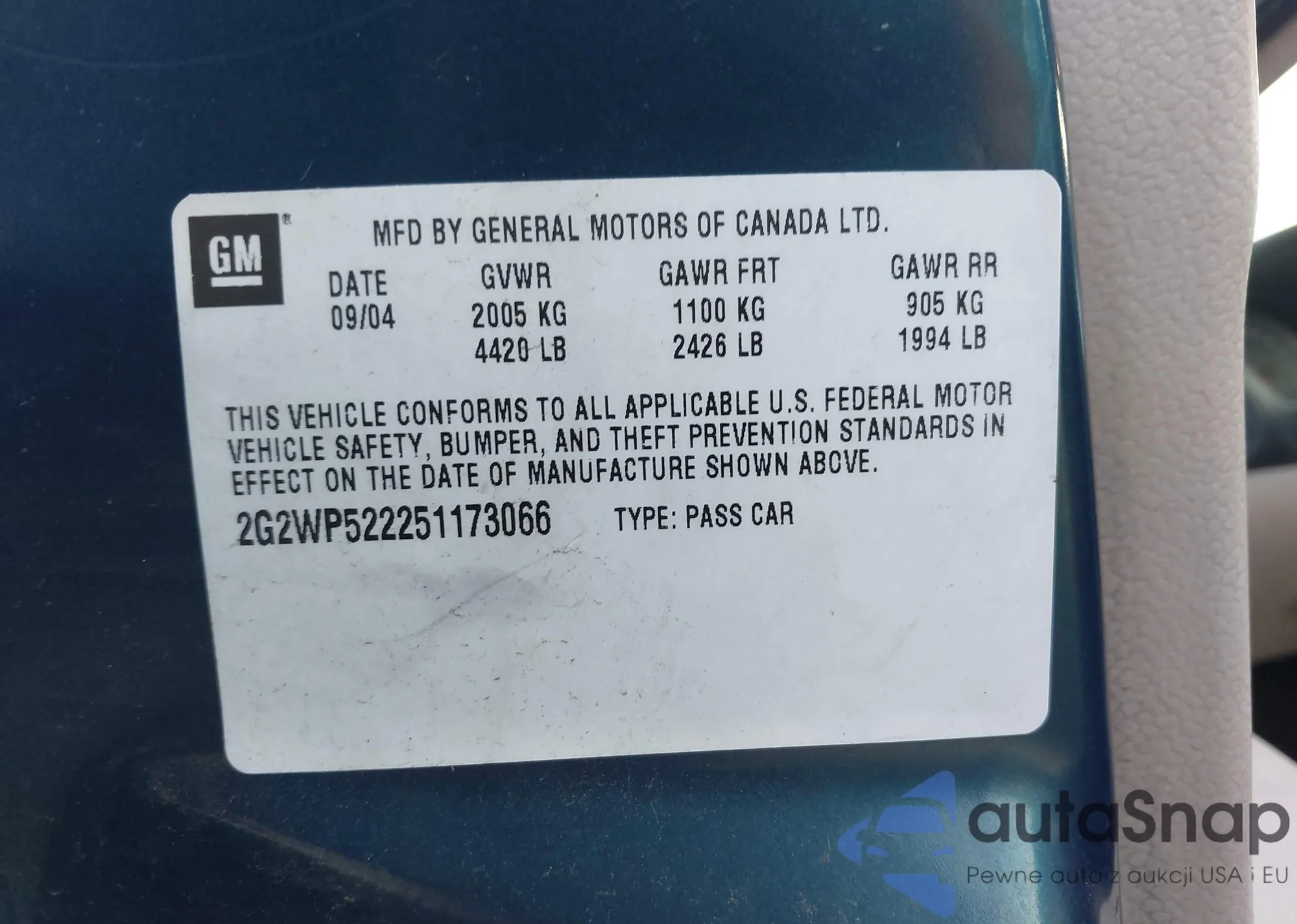 • VIN 2G2WP522251173066