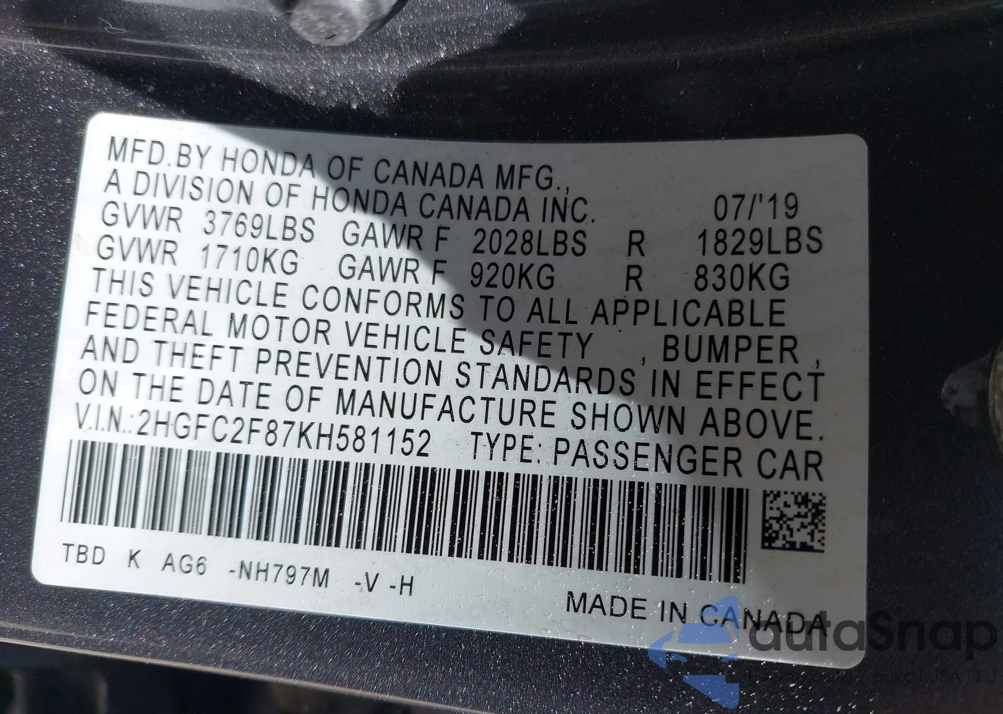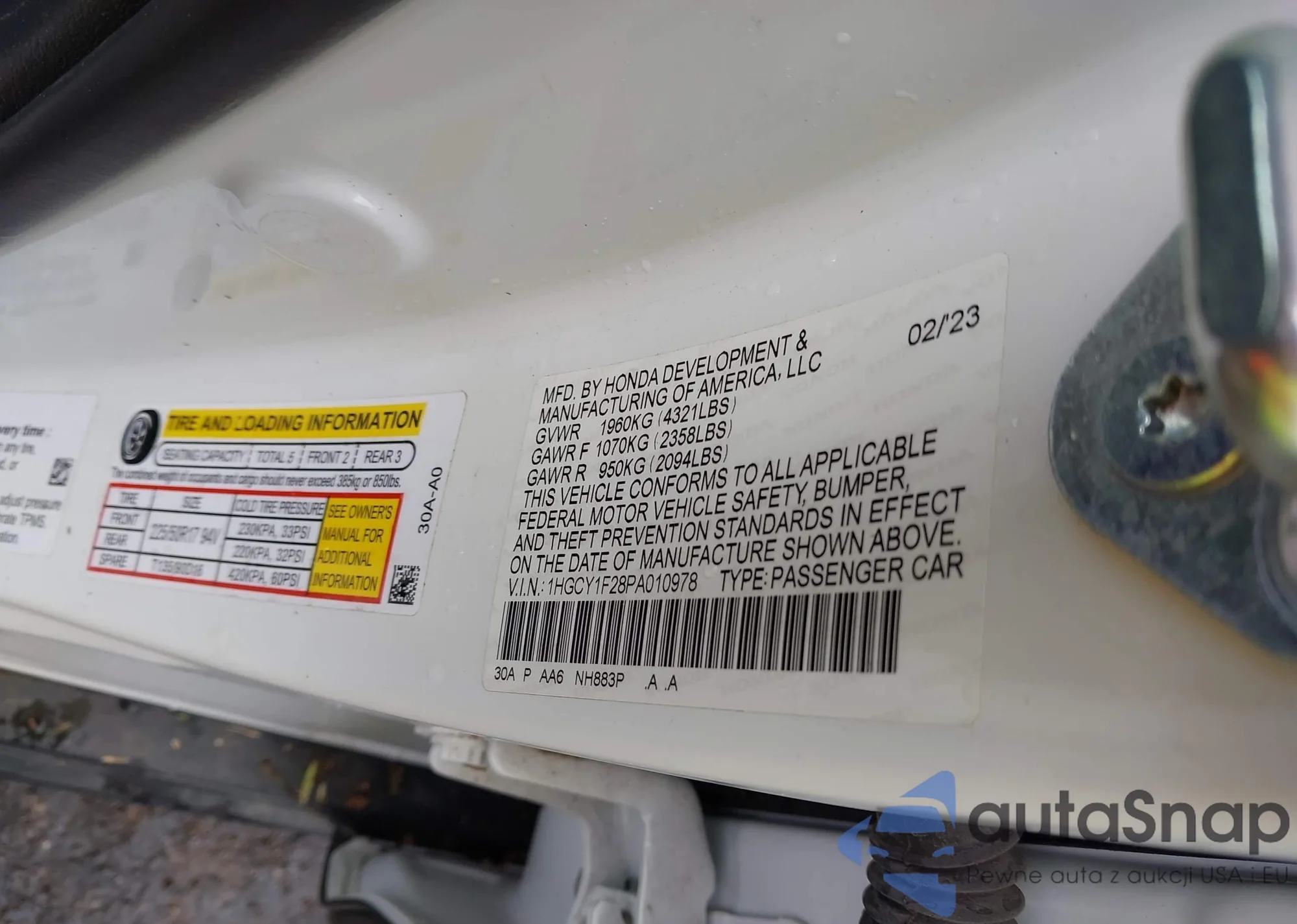 LOT: 40333962 VIN: 2HNYD18822H527408