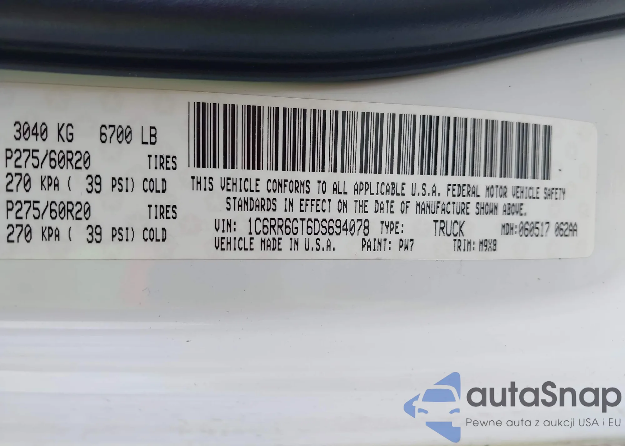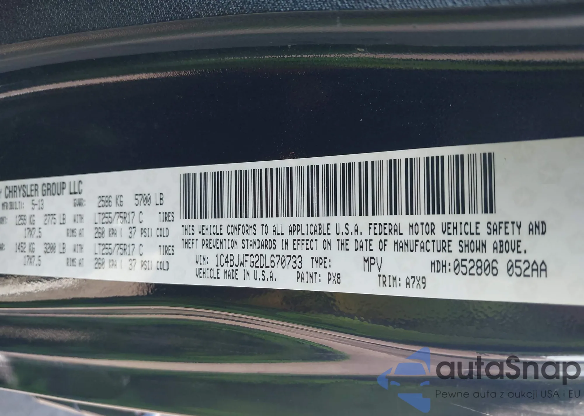 • VIN 1C4BJWFG2DL670733