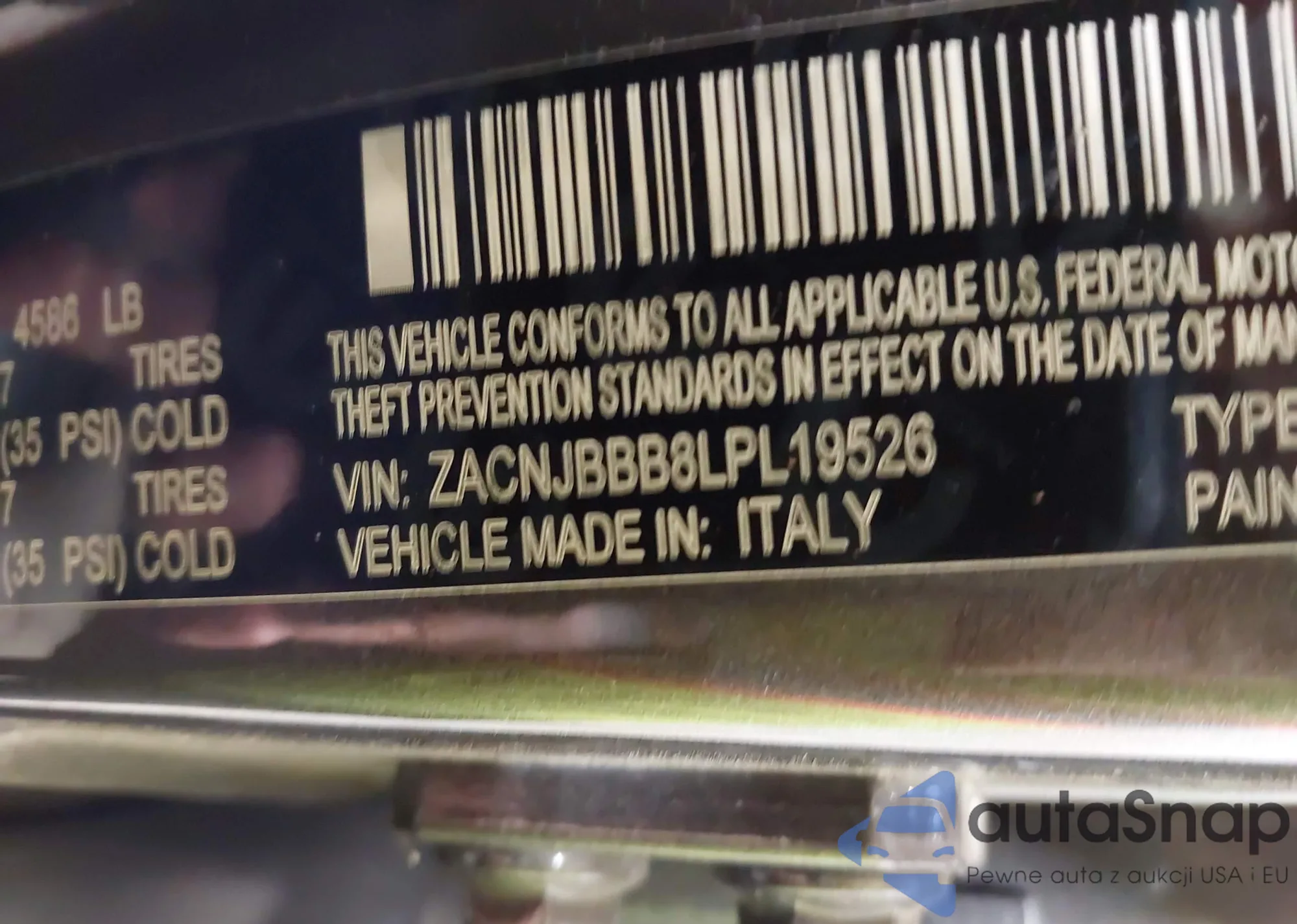 LOT: 42328256 VIN: ZACNJBBB8LPL19526