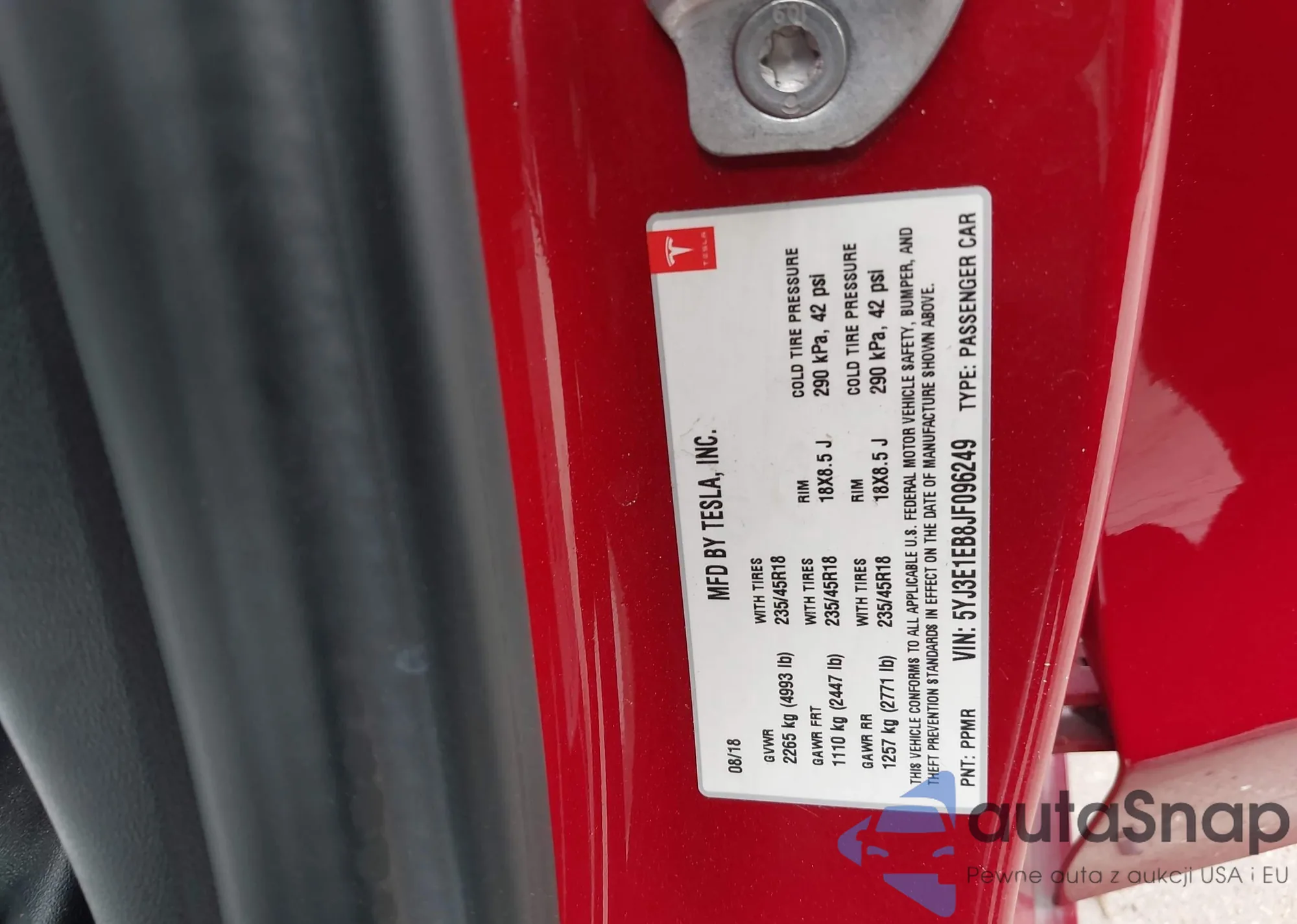 • VIN 5YJ3E1EB8JF096249