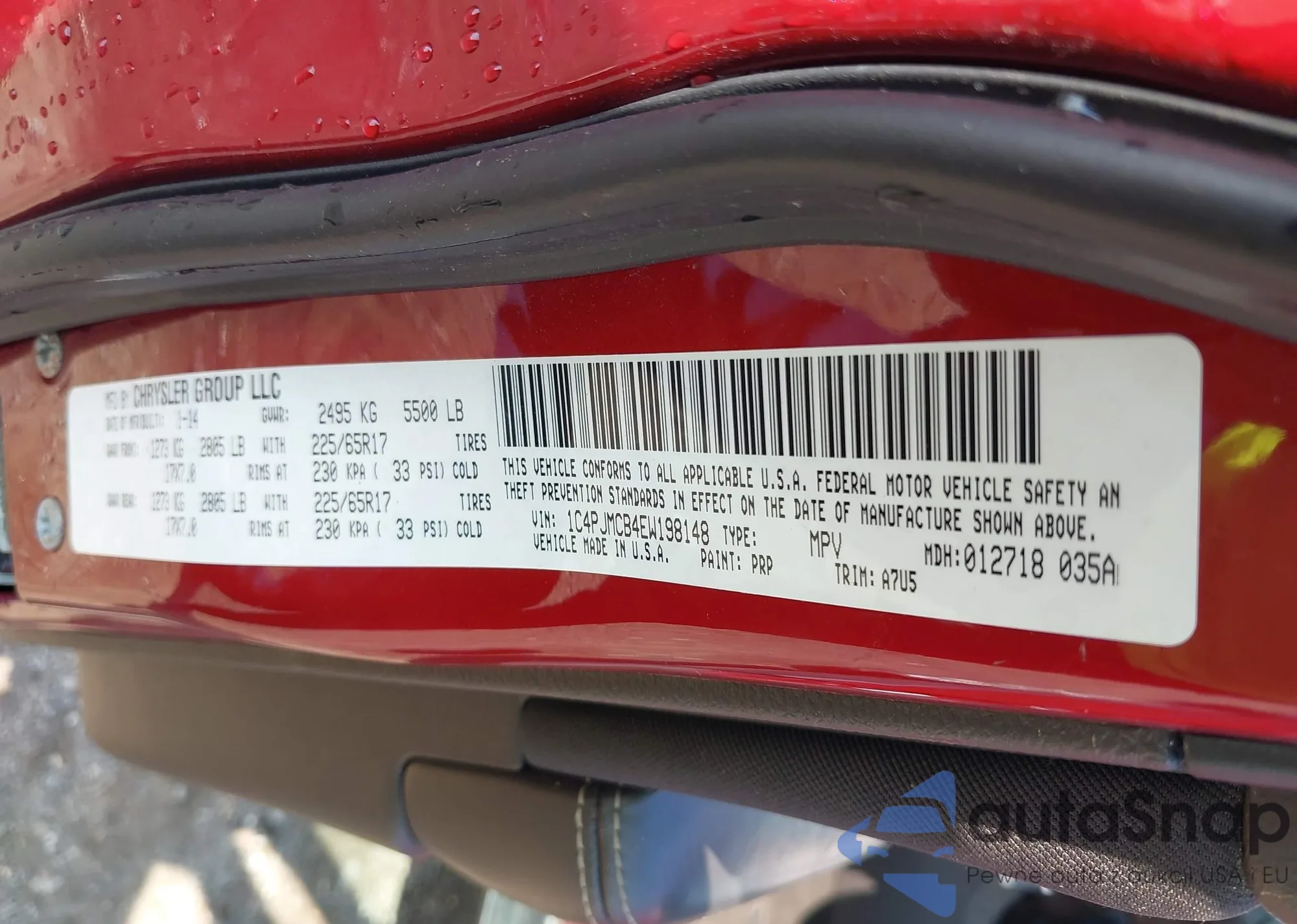 LOT: 39871593 VIN: 1C4PJMCB4EW198148