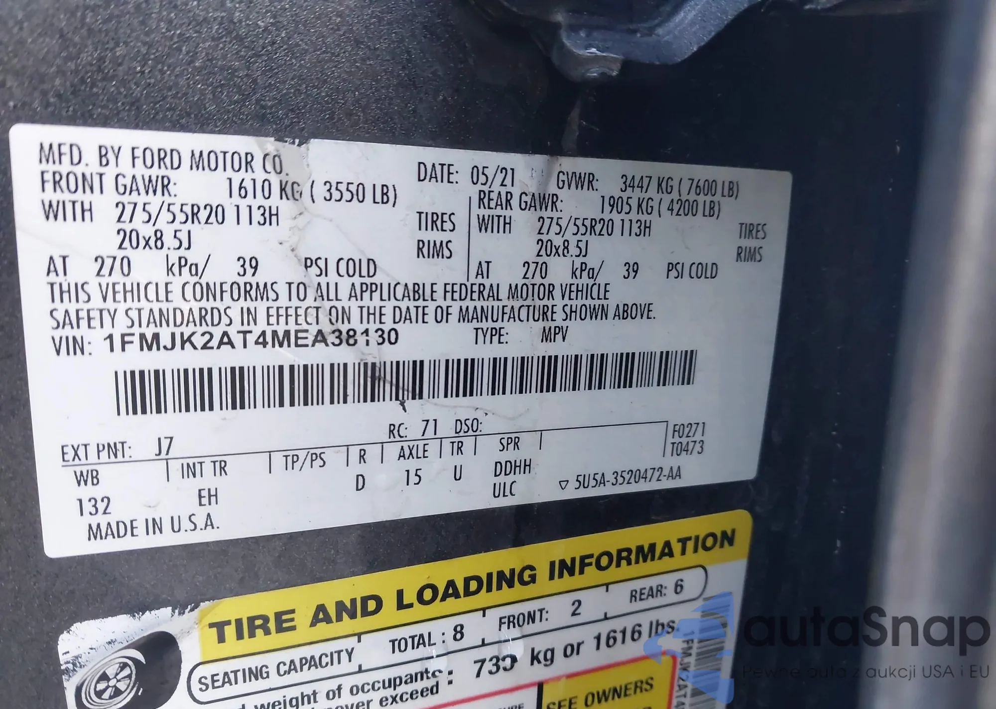 • VIN 1FMJK2AT4MEA38130