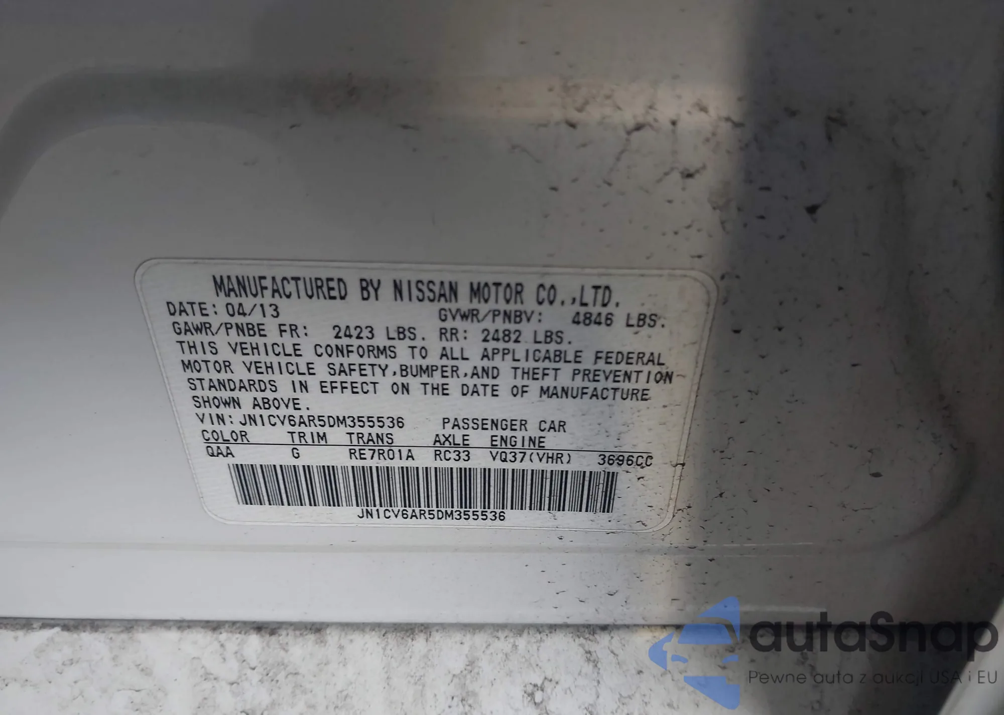 • VIN JN1CV6AR5DM355536