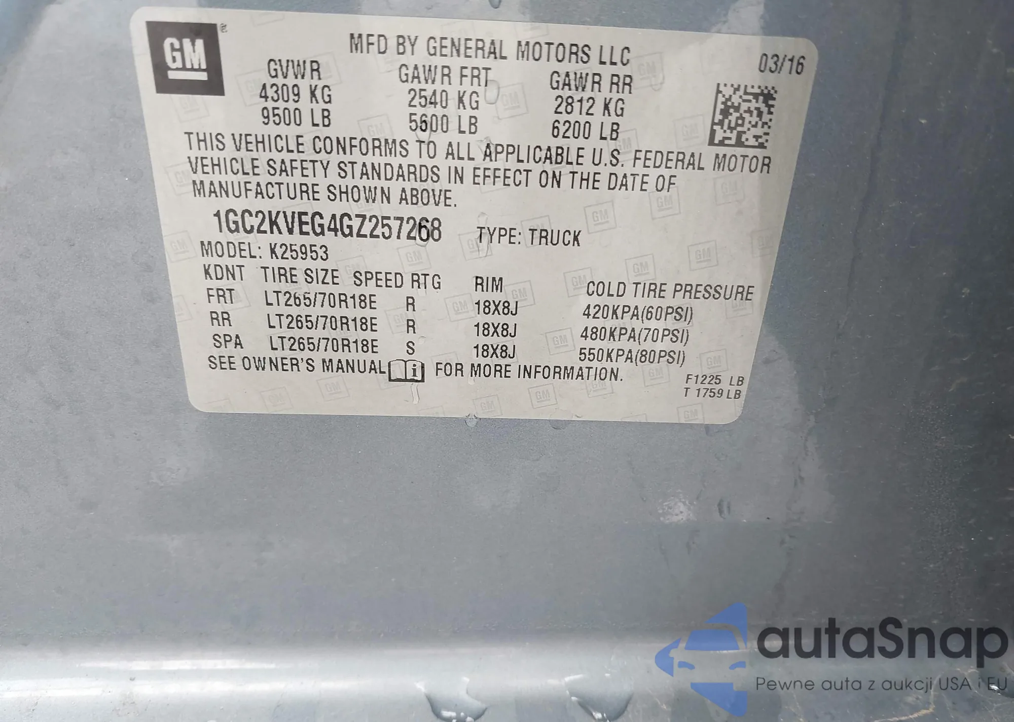• VIN 1GC2KVEG4GZ257268