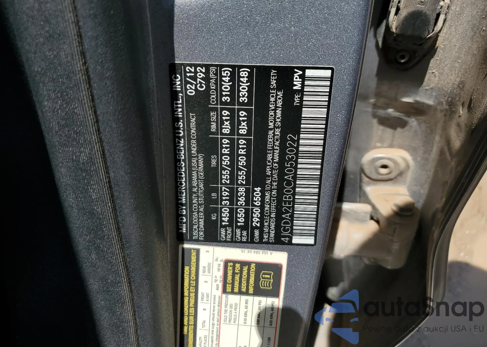 • VIN 4JGDA2EB0CA053022