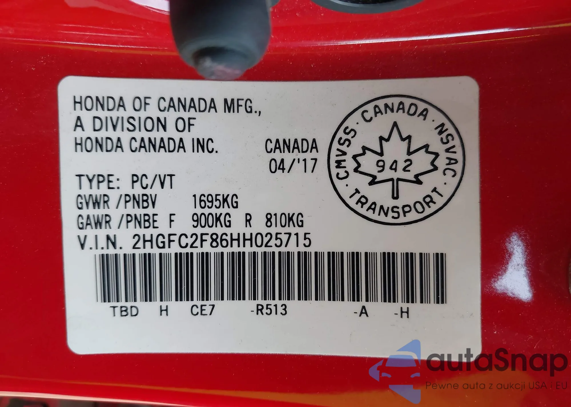• VIN 1HGCV2F90NA009803