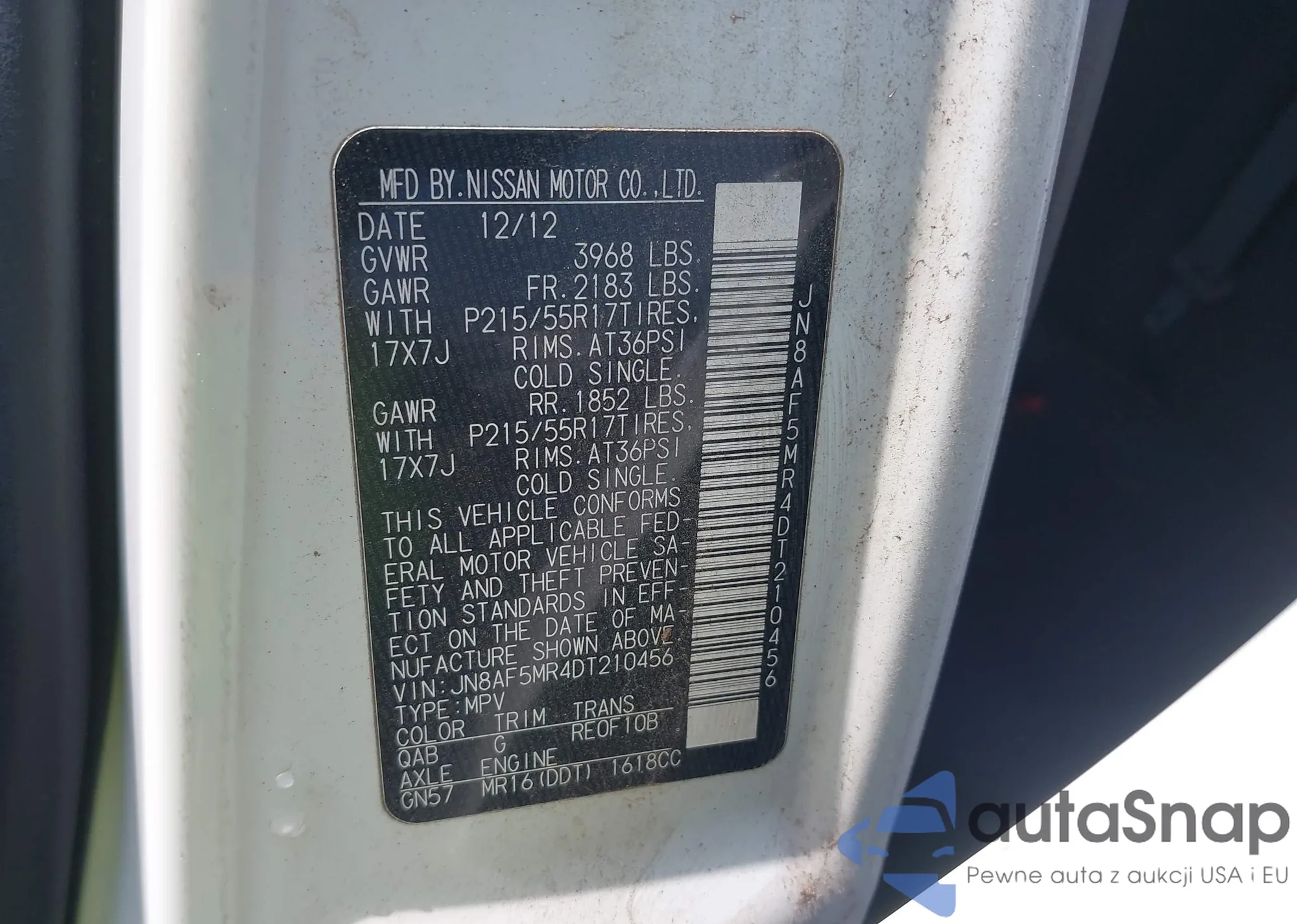 LOT: 42171598 VIN: JN1EV7AR6KM550265