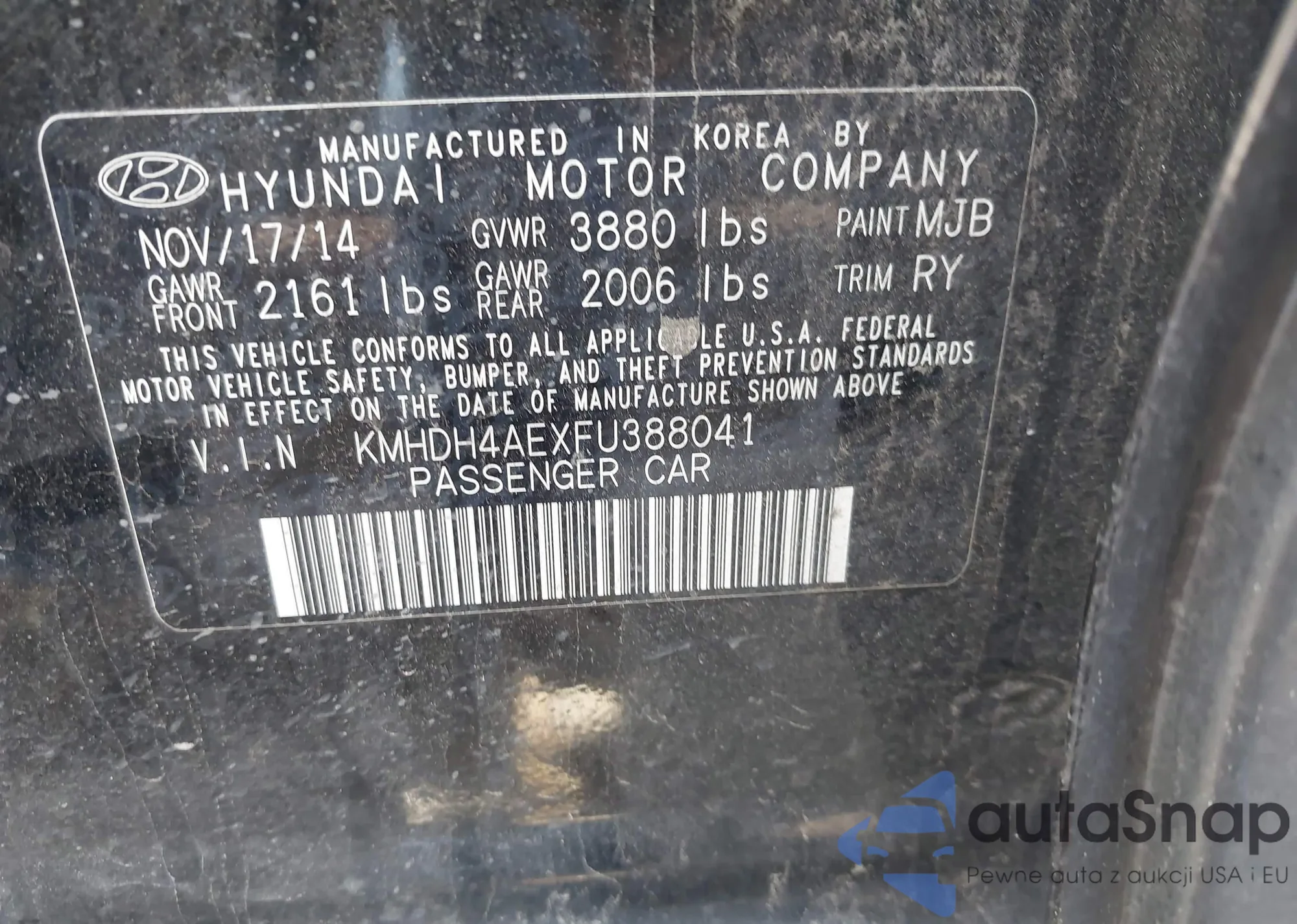 • VIN KMHDH4AEXFU388041