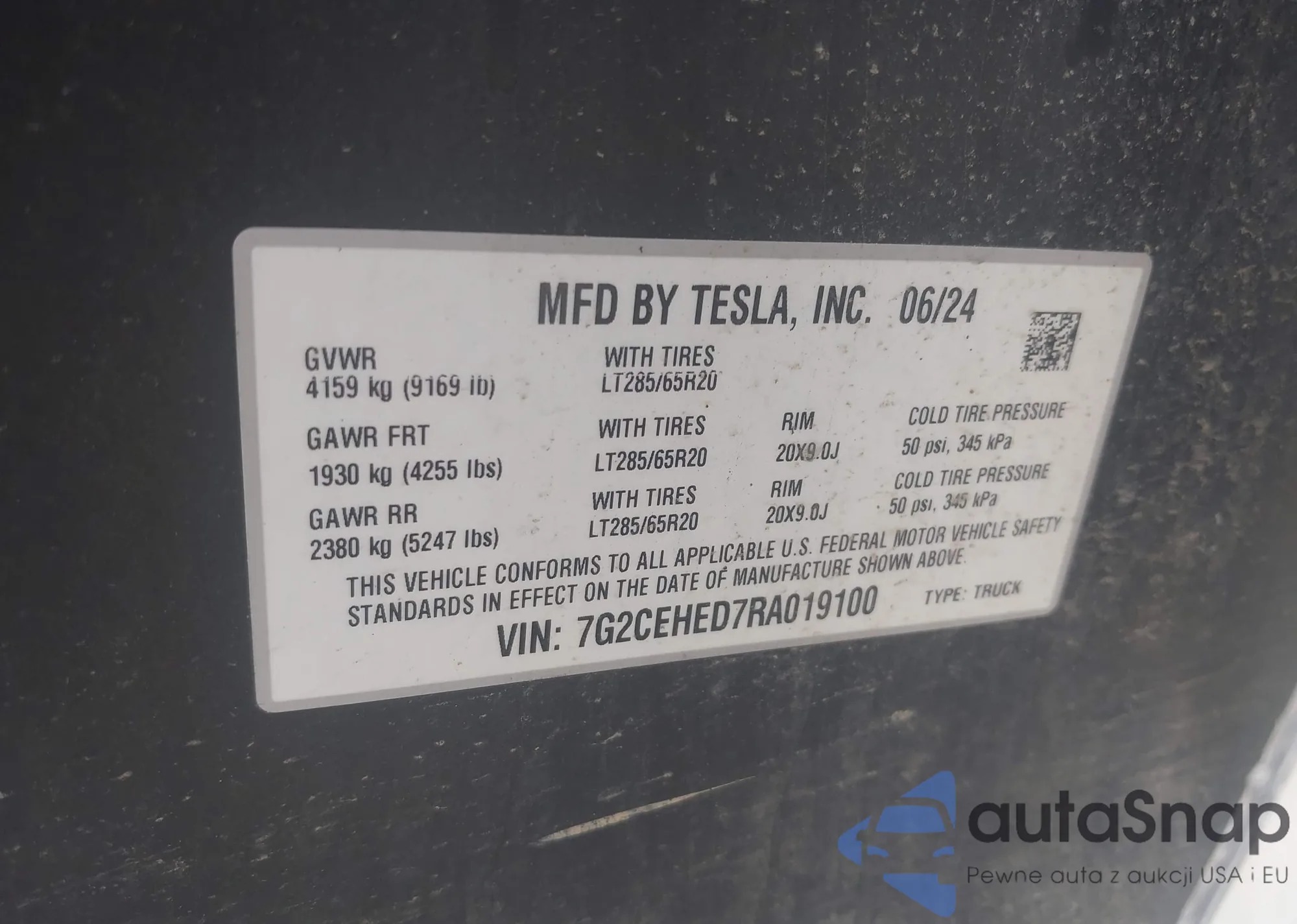 2024 Tesla Cybertruck from USA, damaged, VIN 7G2CEHED7RA019100