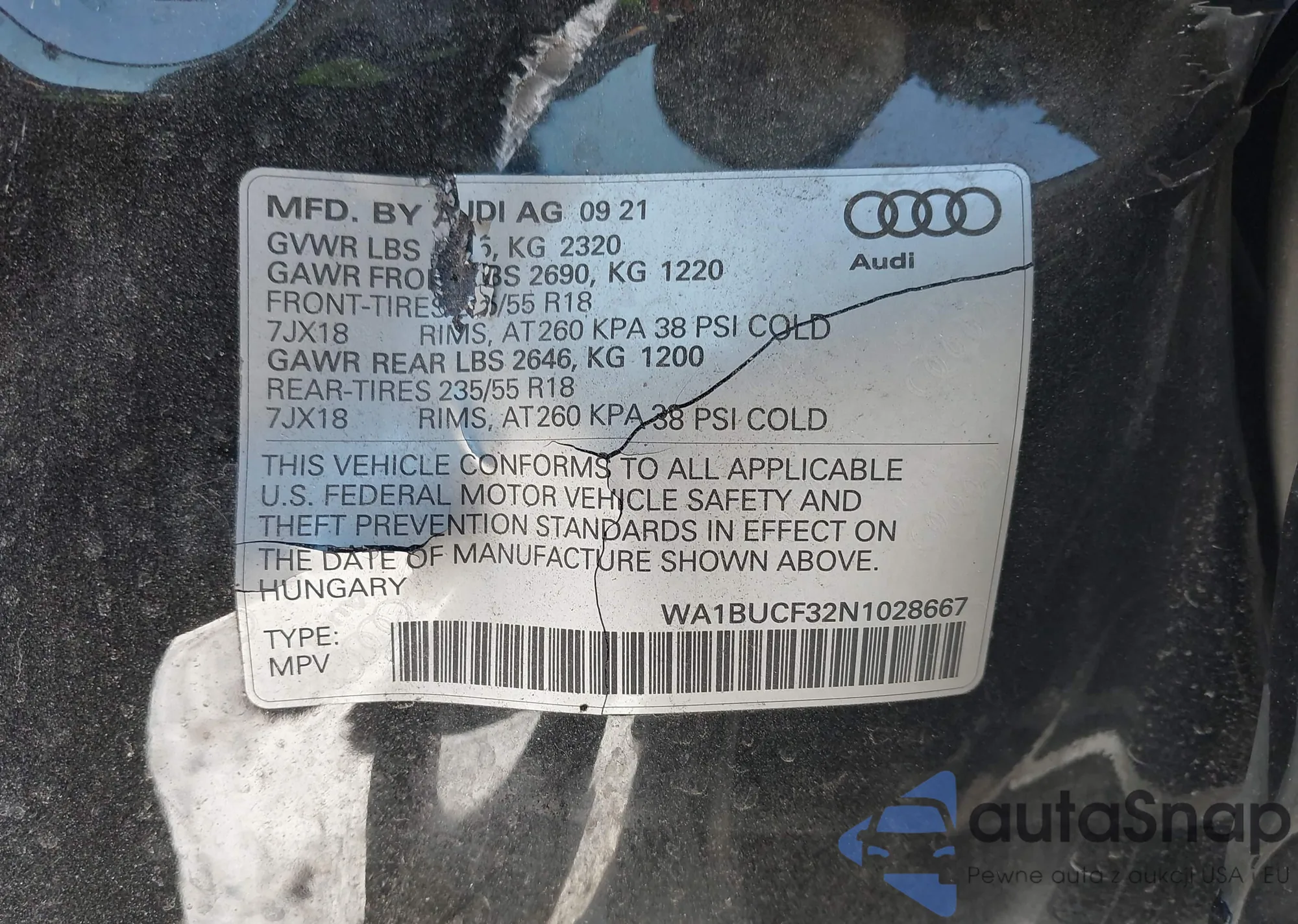 LOT: 41356184 VIN: WA1BUCF32N1028667