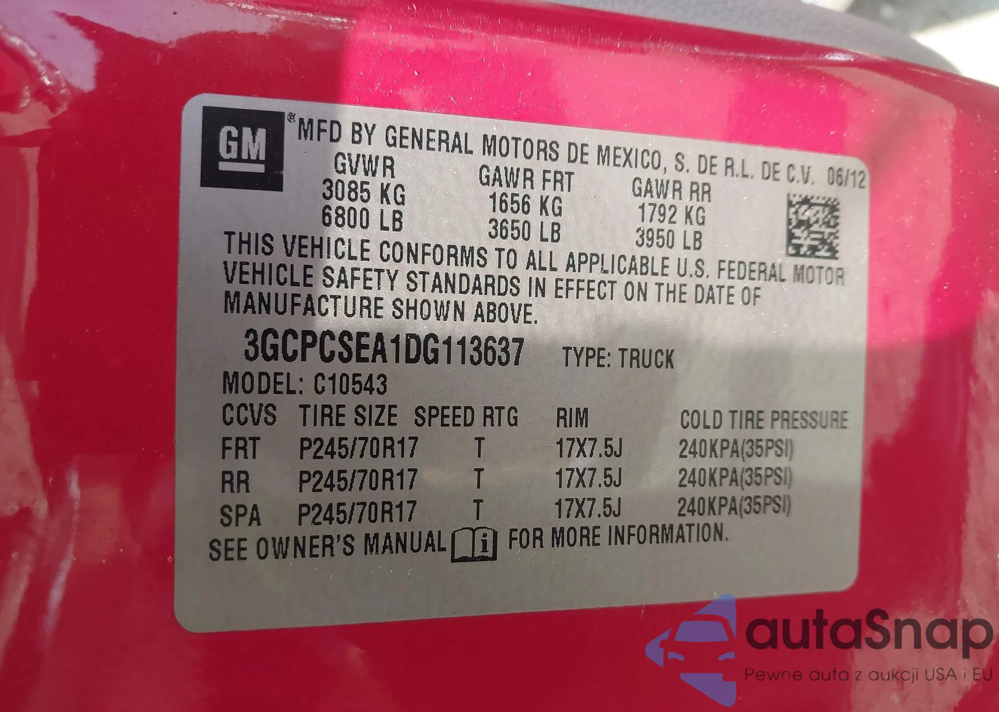 • VIN 3GCPCSEA1DG113637