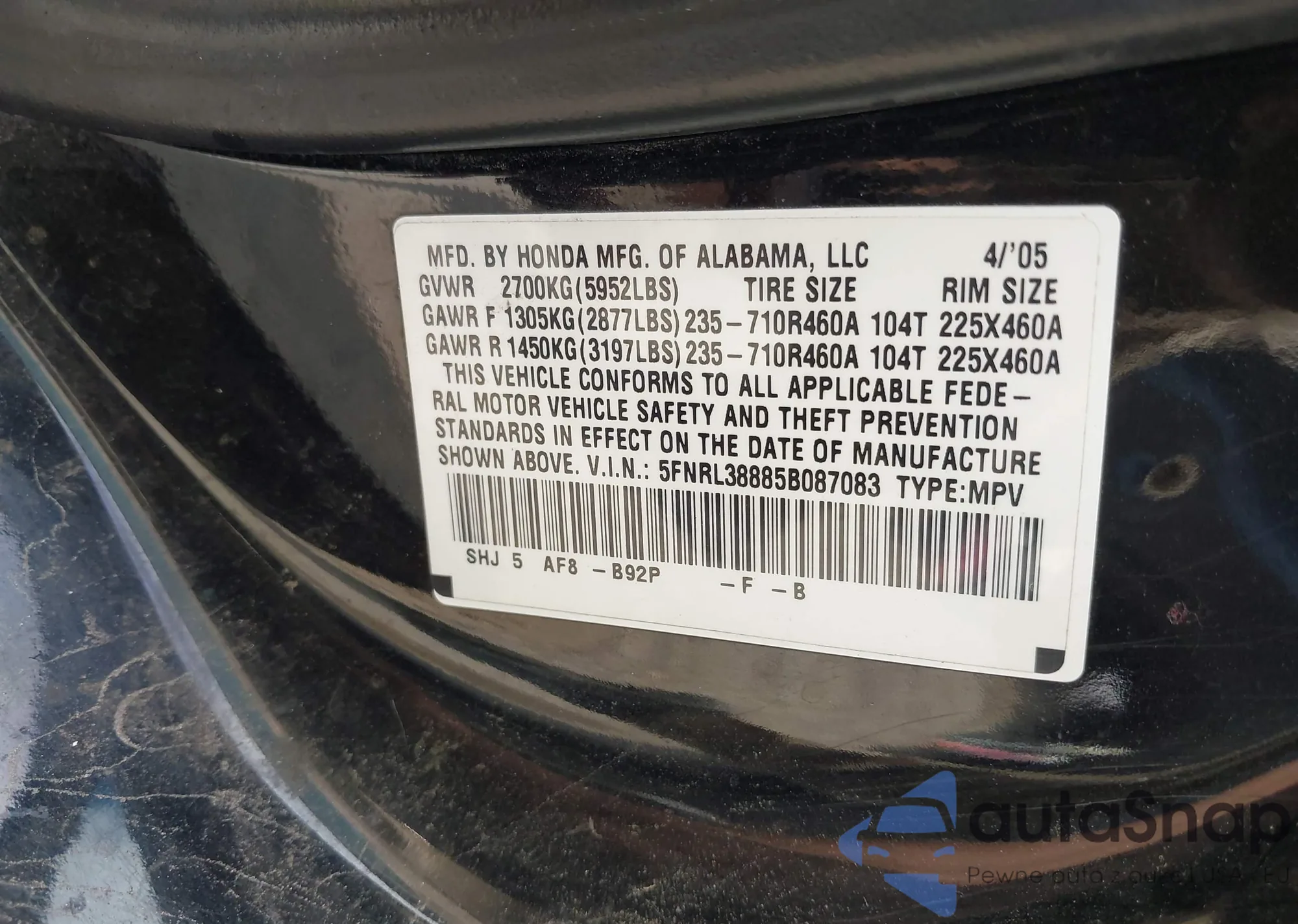 LOT: 42158251 VIN: SHSRD78823U131587