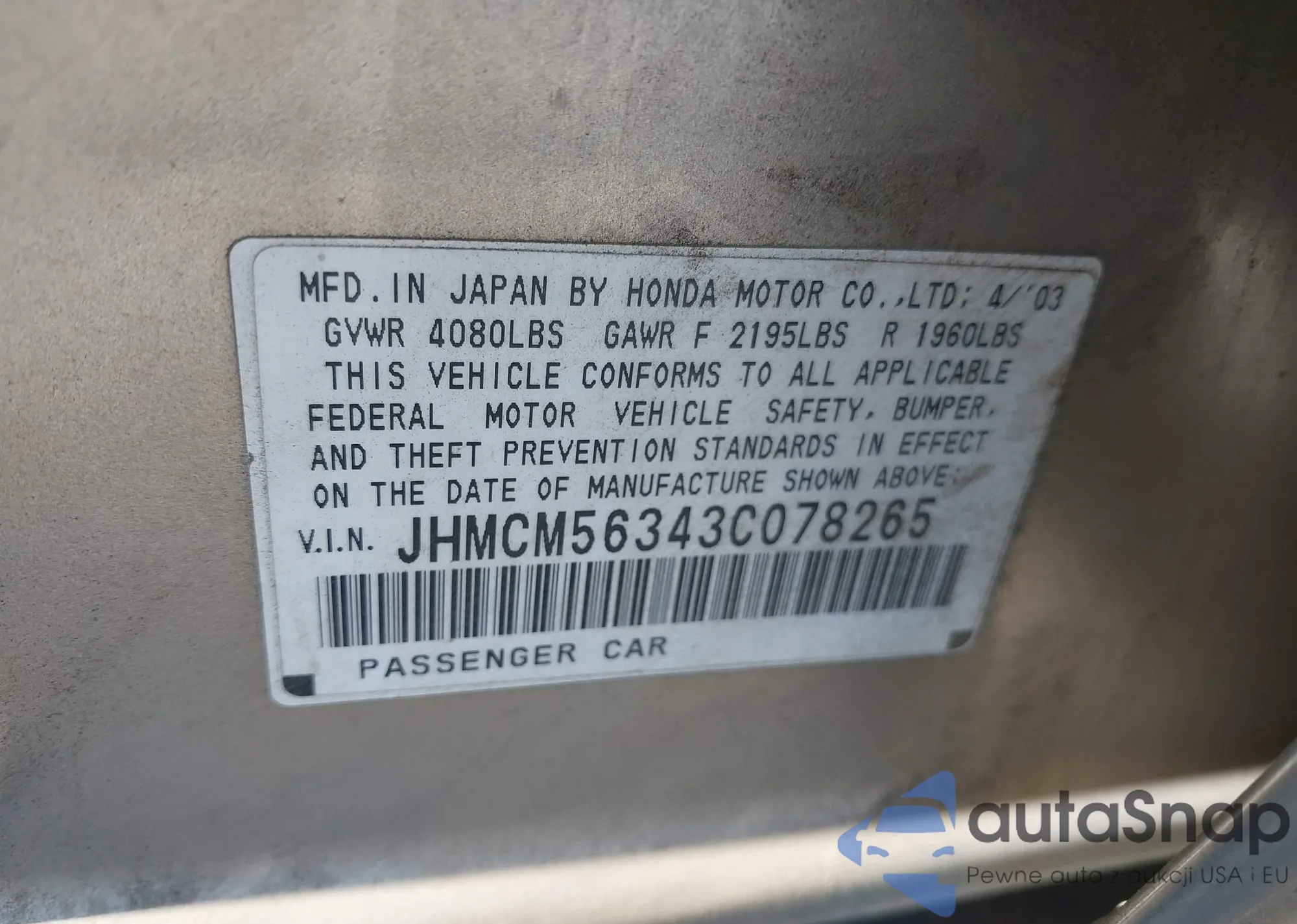 • VIN JHMCM56343C078265