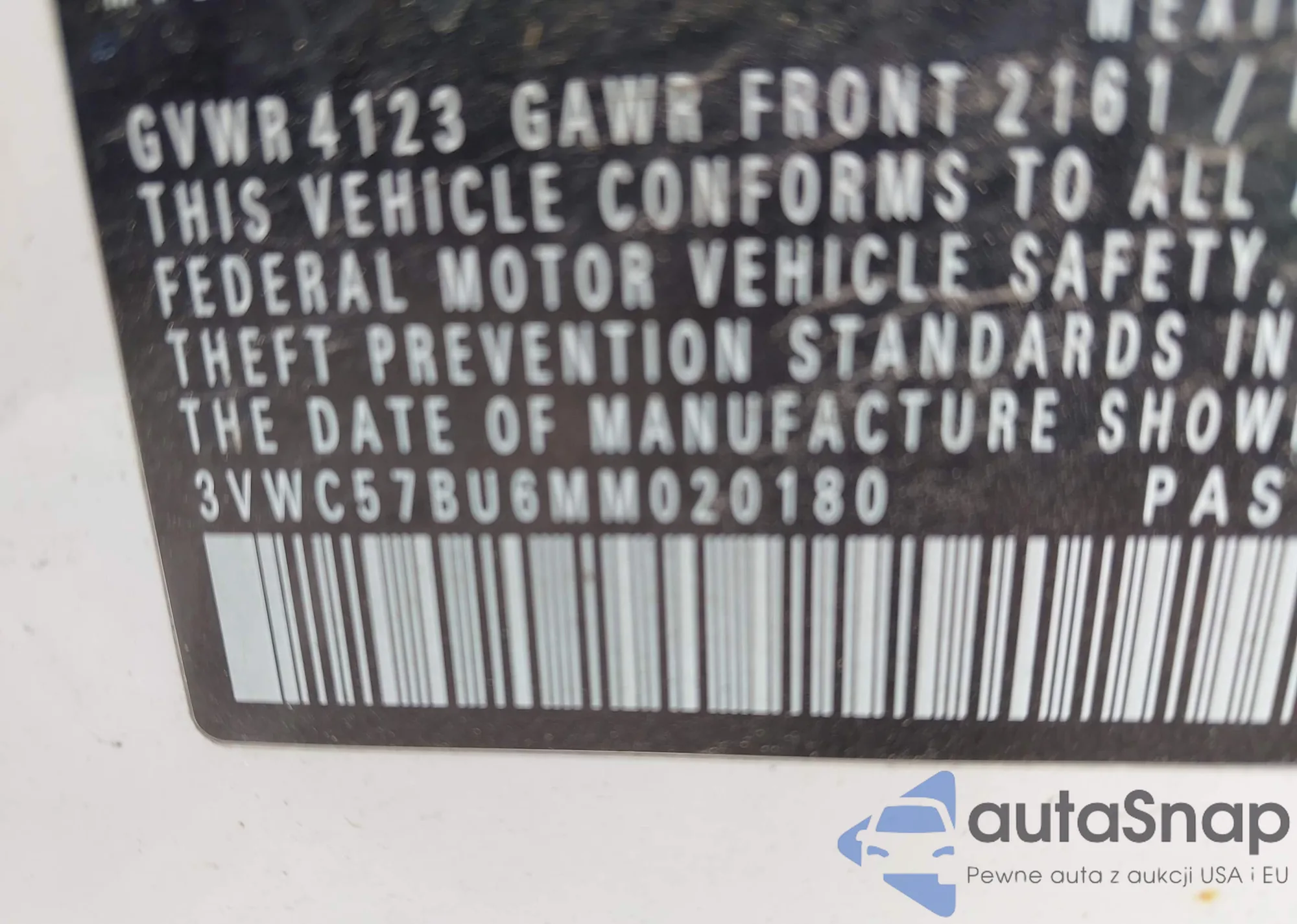 LOT: 42272467 VIN: WVWYH63B73E070842