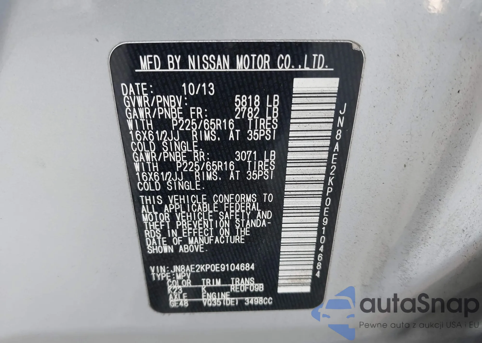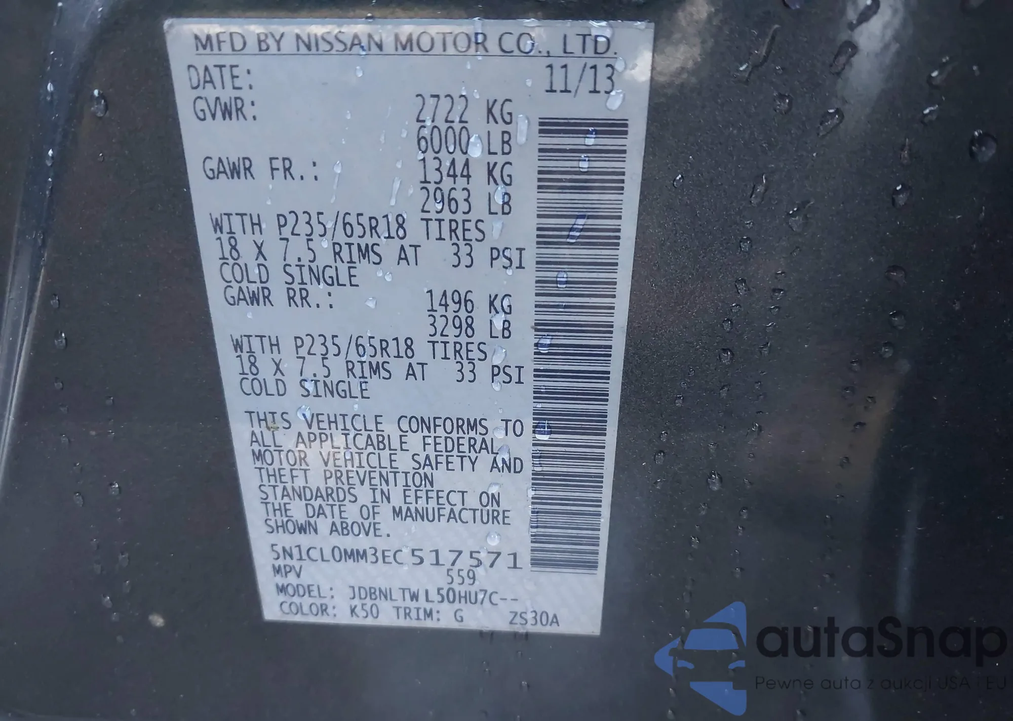 • VIN 5N1CL0MM3EC517571