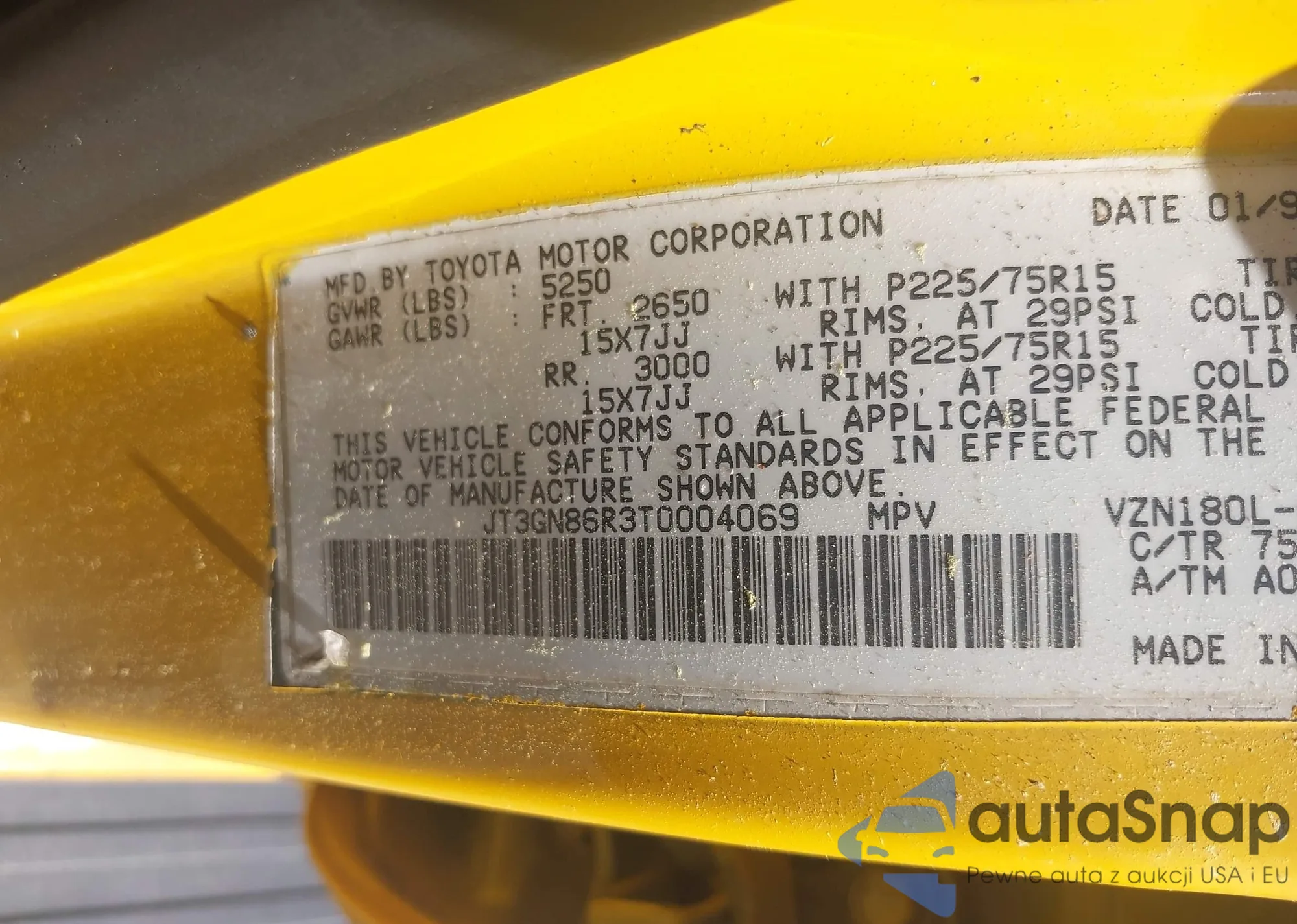 LOT: 42277253 VIN: JT3GN86R3T0004069