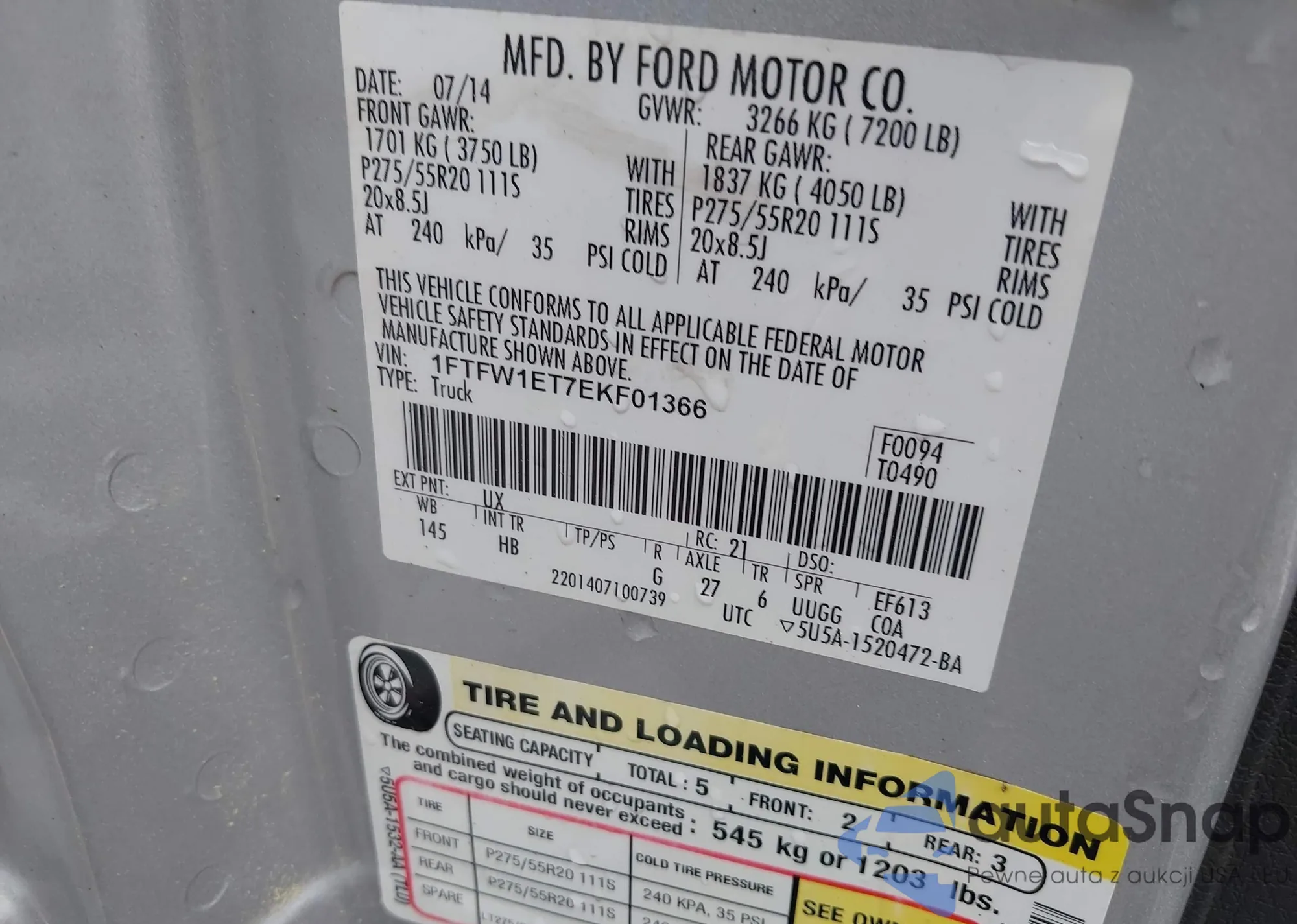• VIN 1FTFW1ET7EKF01366