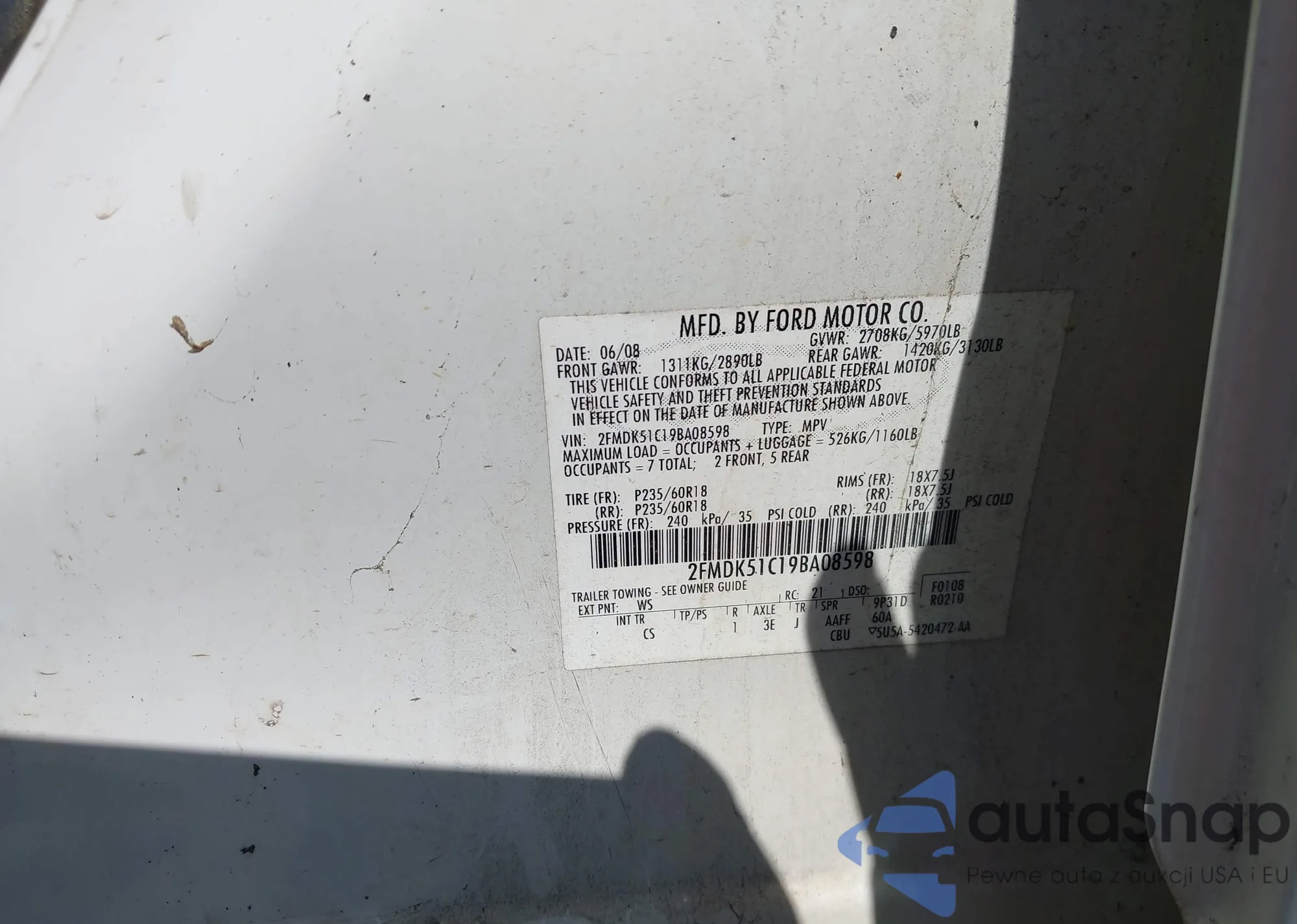 LOT: 42143499 VIN: 2FMDK51C19BA08598