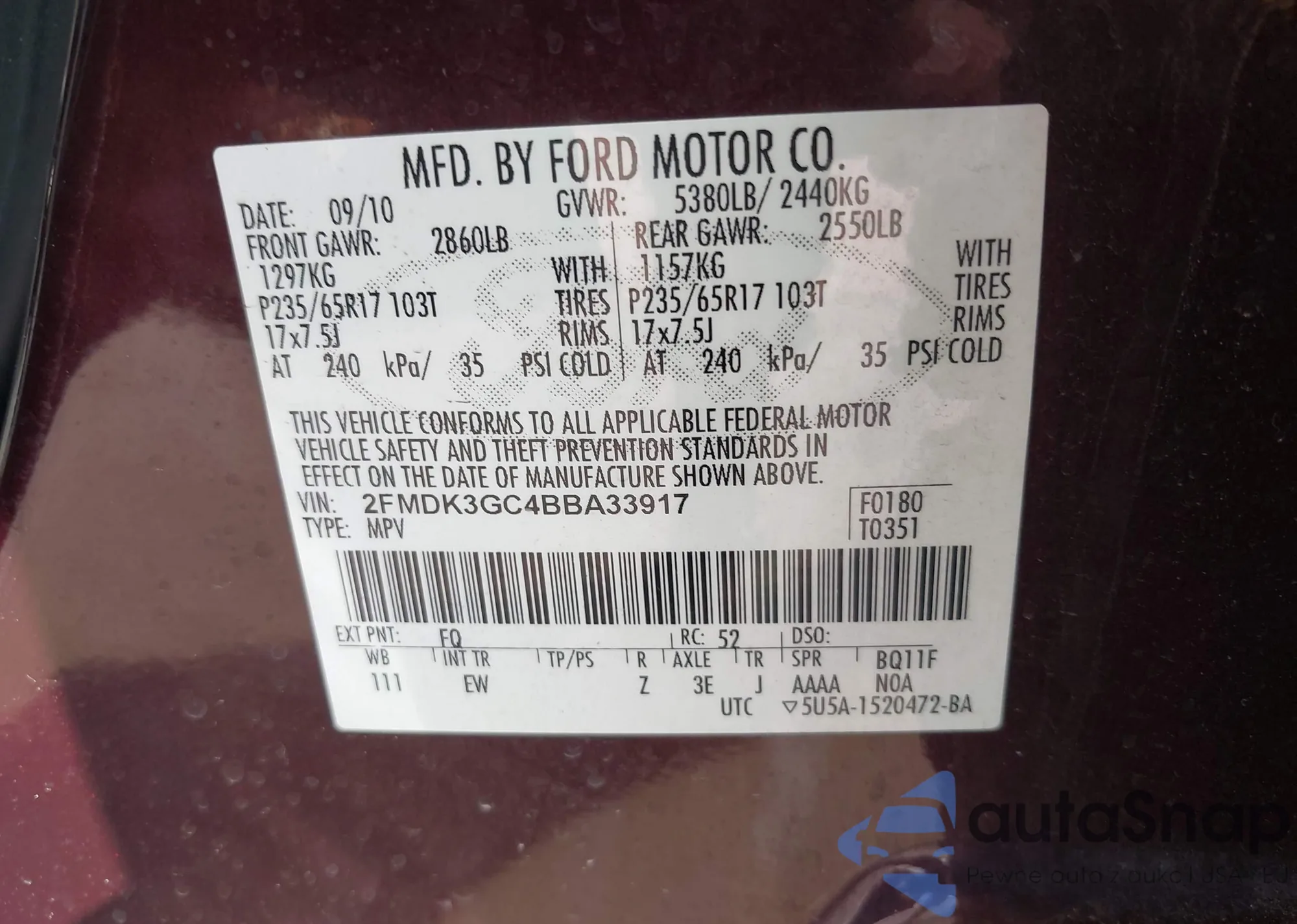 • VIN 2FMDK3JC6BBA21776