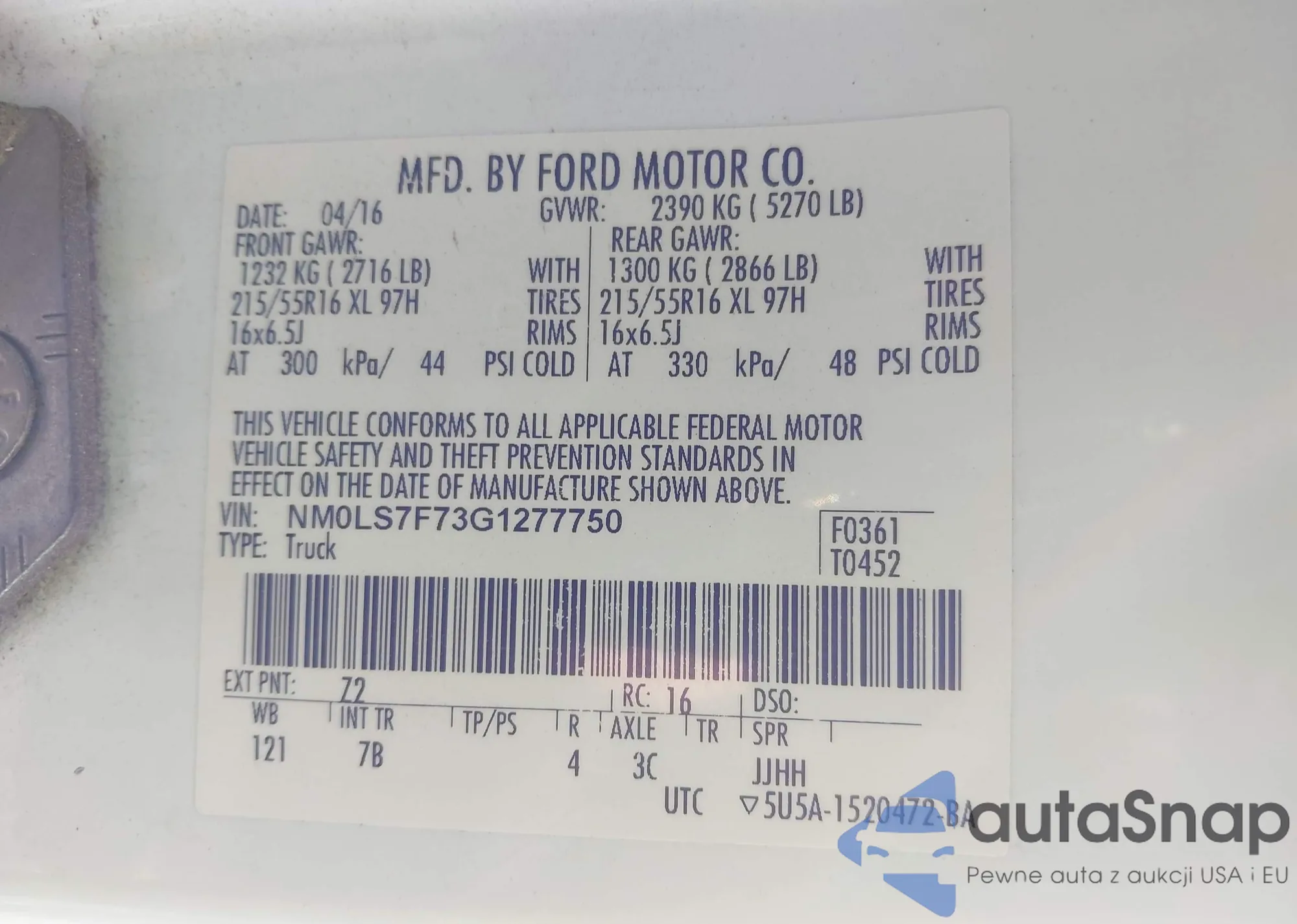 • VIN 1FADP3K27GL374603