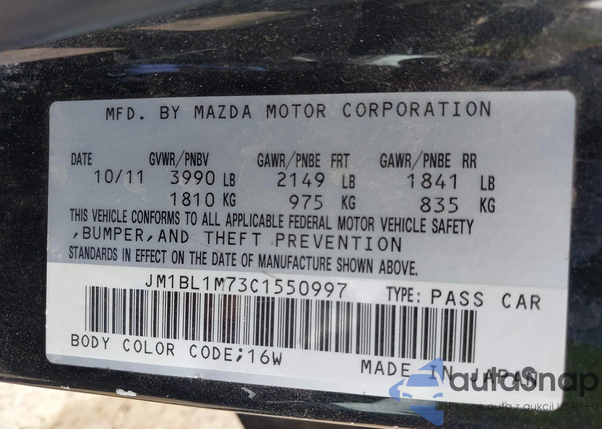 • VIN JM1BL1M73C1550997
