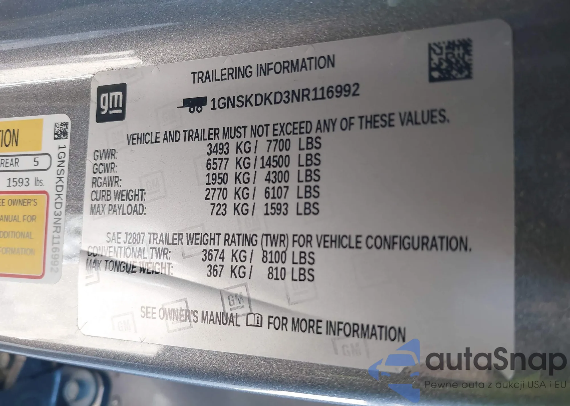 LOT: 41371812 VIN: 1GNSKDKD3NR116992