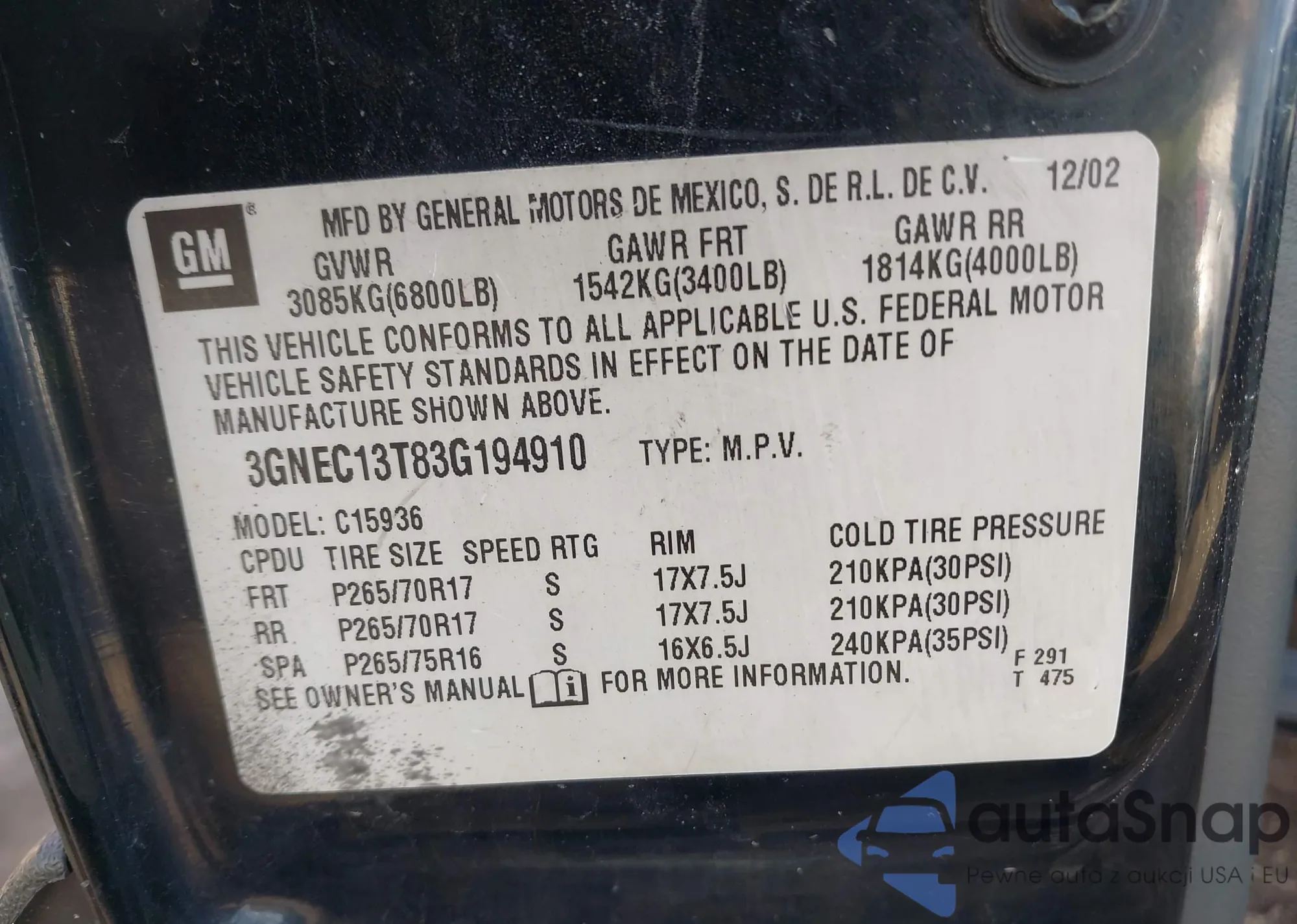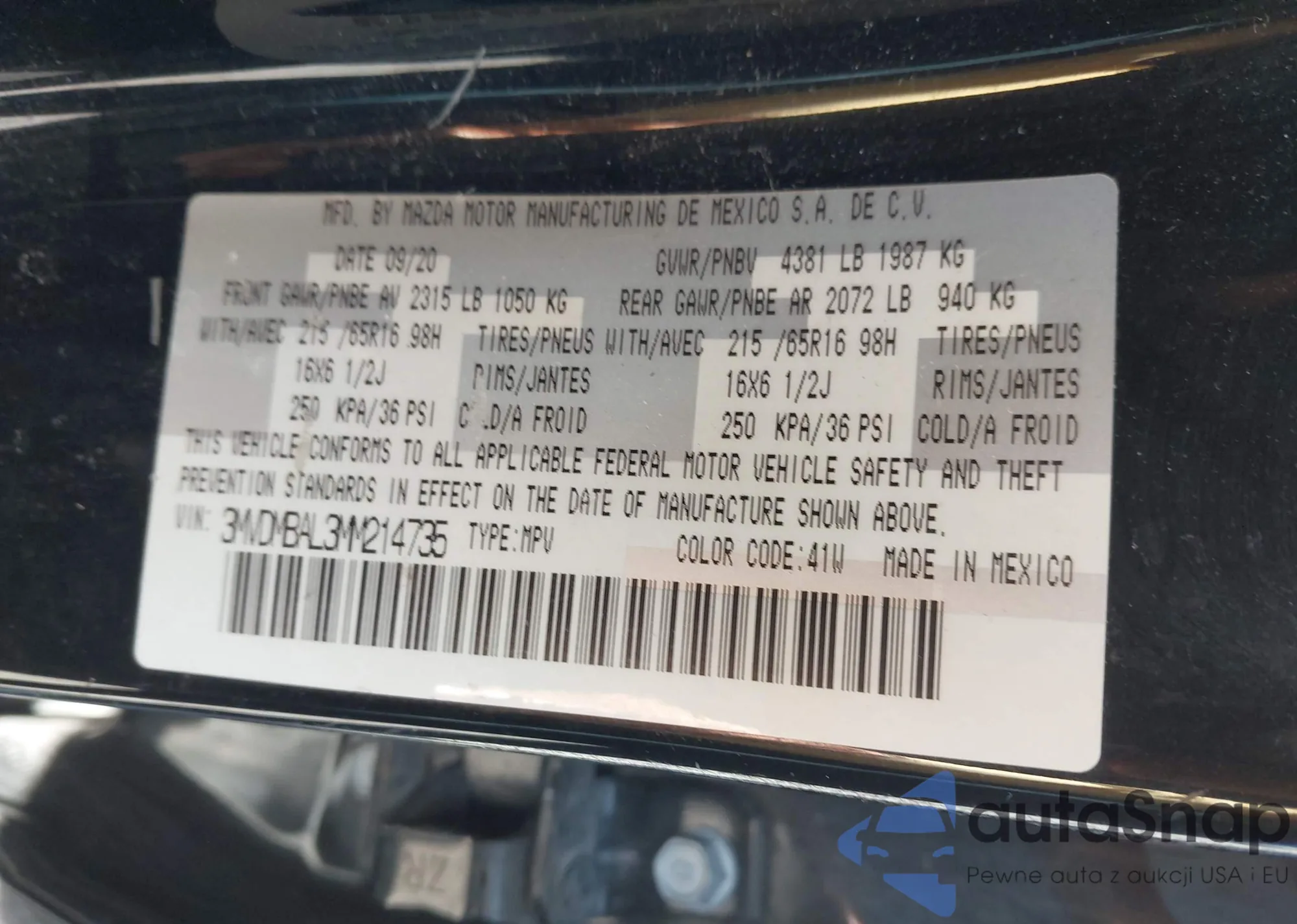 • VIN 3MVDMBAL3MM214735