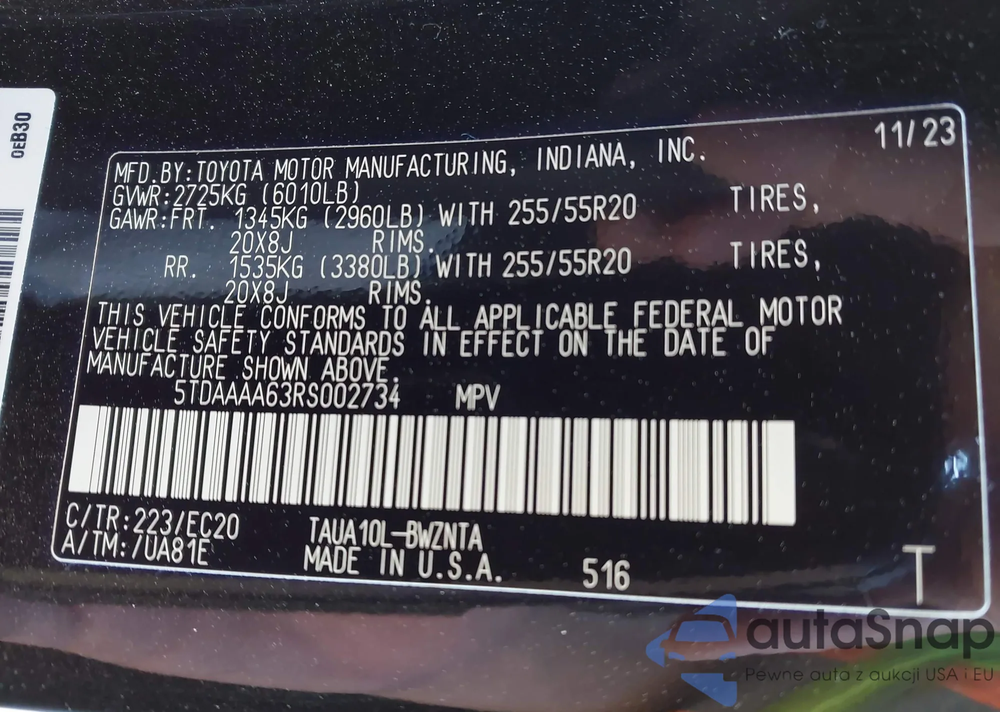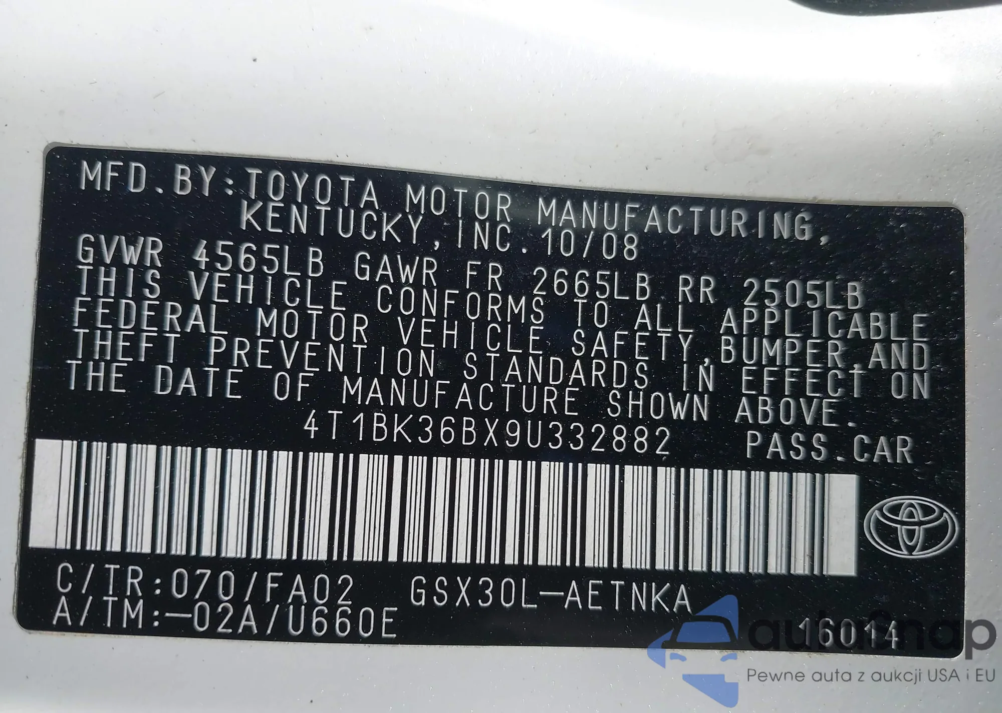LOT: 42008119 VIN: 4T1BK36BX9U332882