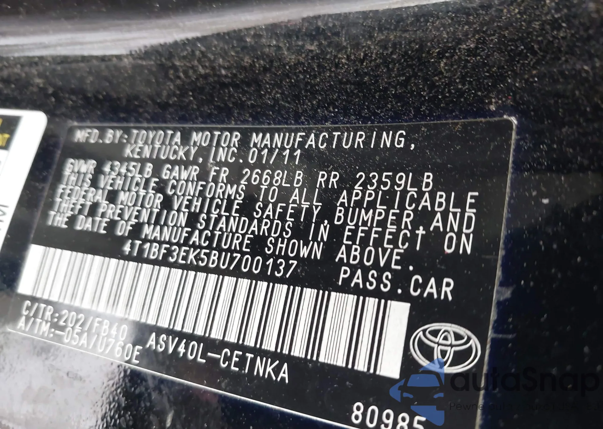 • VIN 5TDDK3EH6BS058562