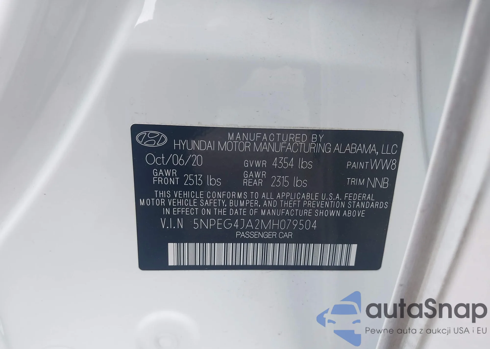 • VIN 5NPEG4JA2MH079504