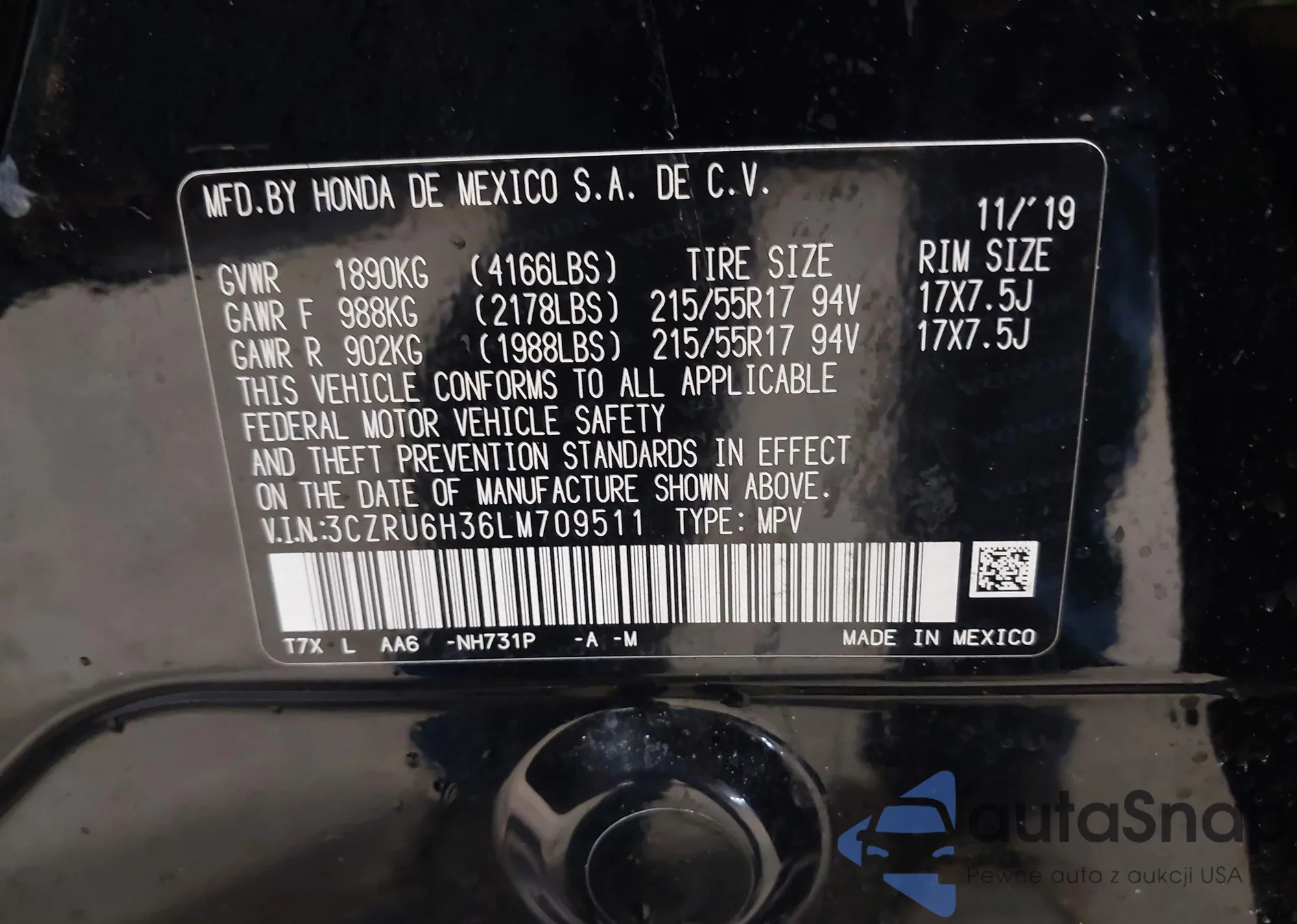 • VIN 3CZRU6H36LM709511
