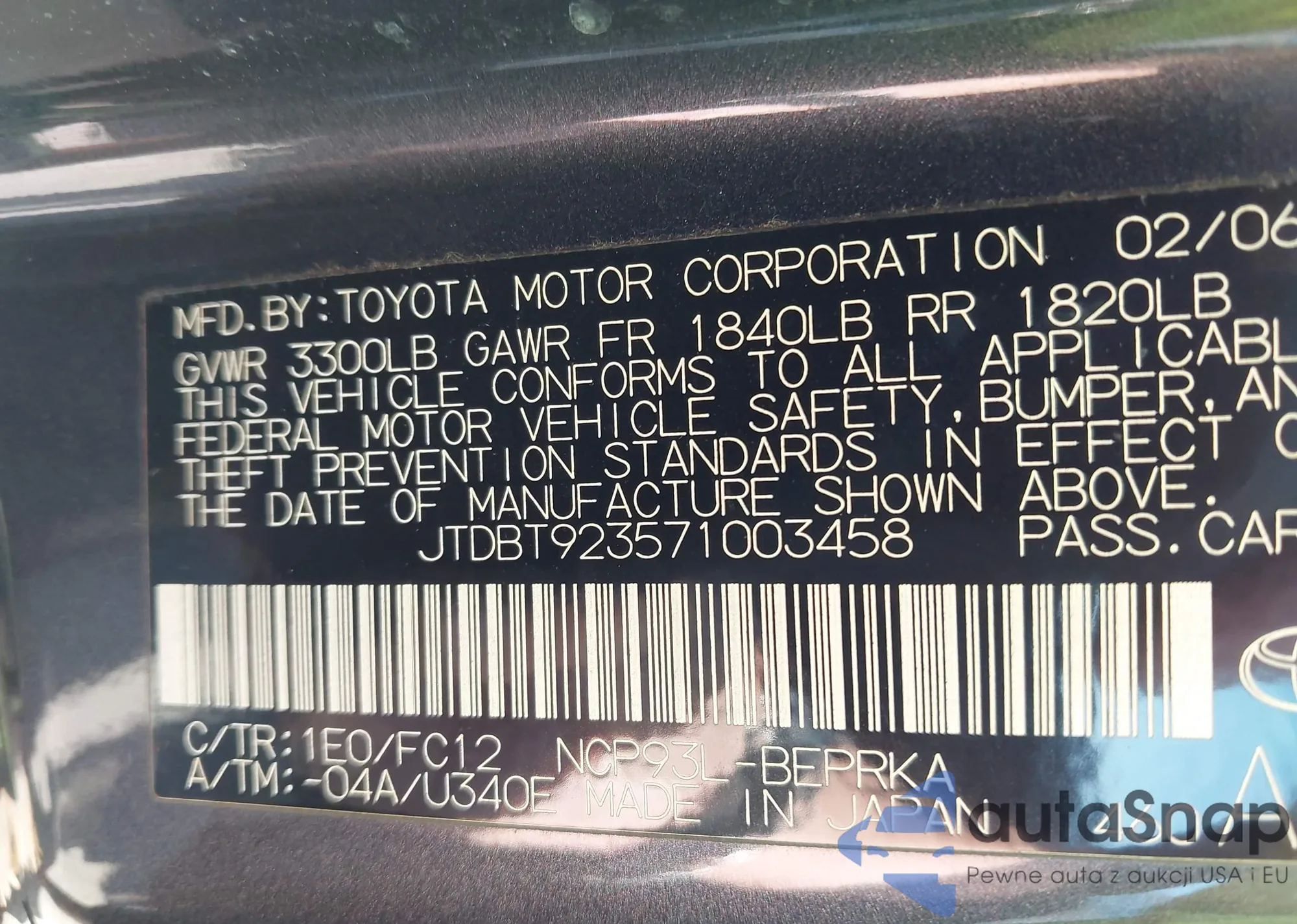 LOT: 41915717 VIN: 1NXBR32E64Z253181