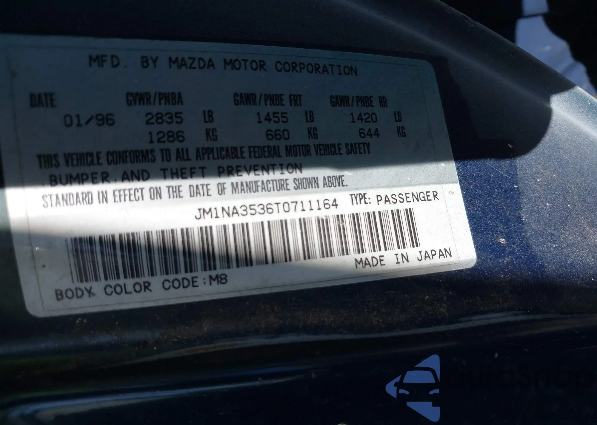 LOT: 41725201 VIN: JM1NA3536T0711164