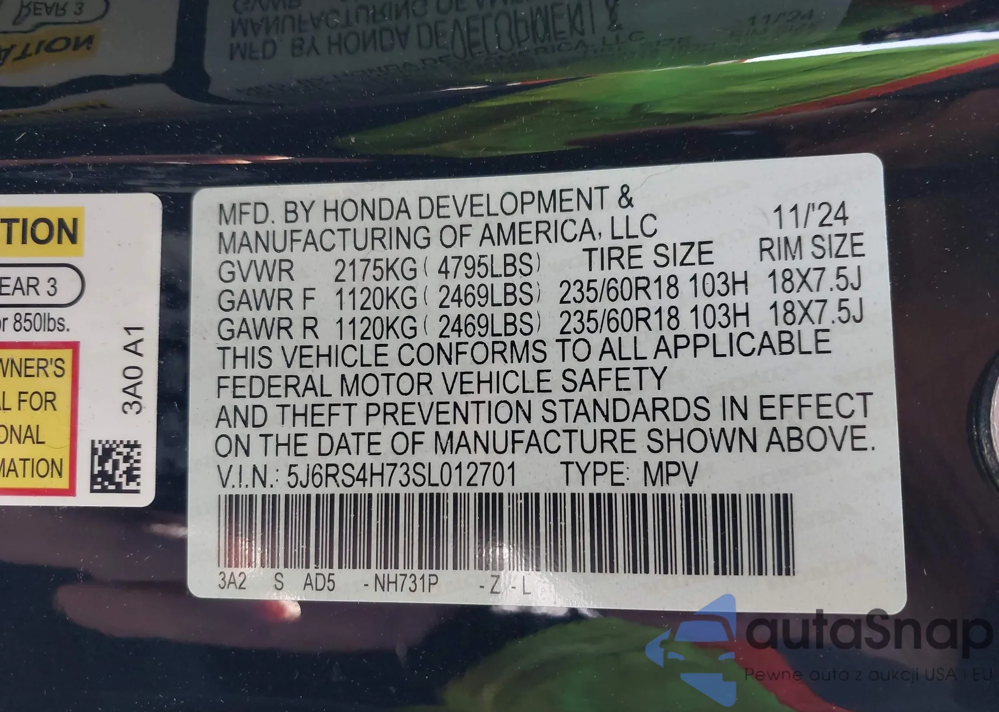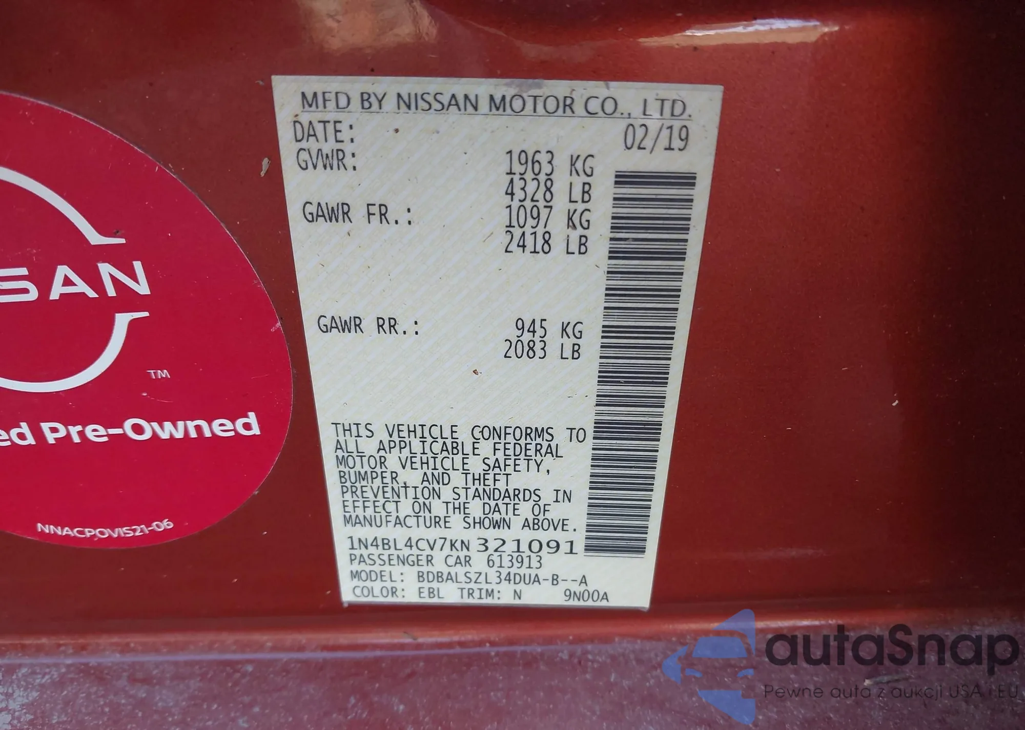 • VIN 1N4BL4CV7KN321091