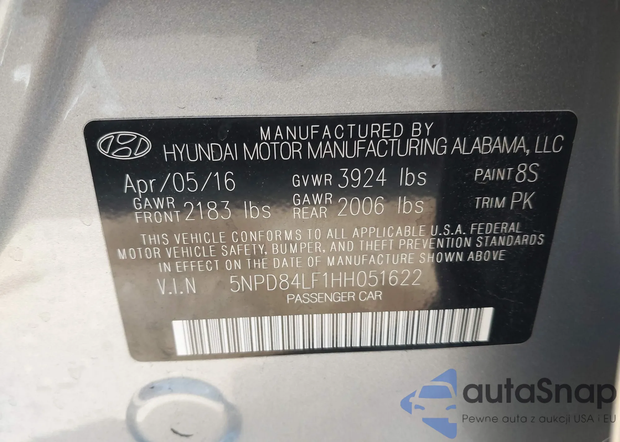 • VIN 5NPE24AF7GH284332