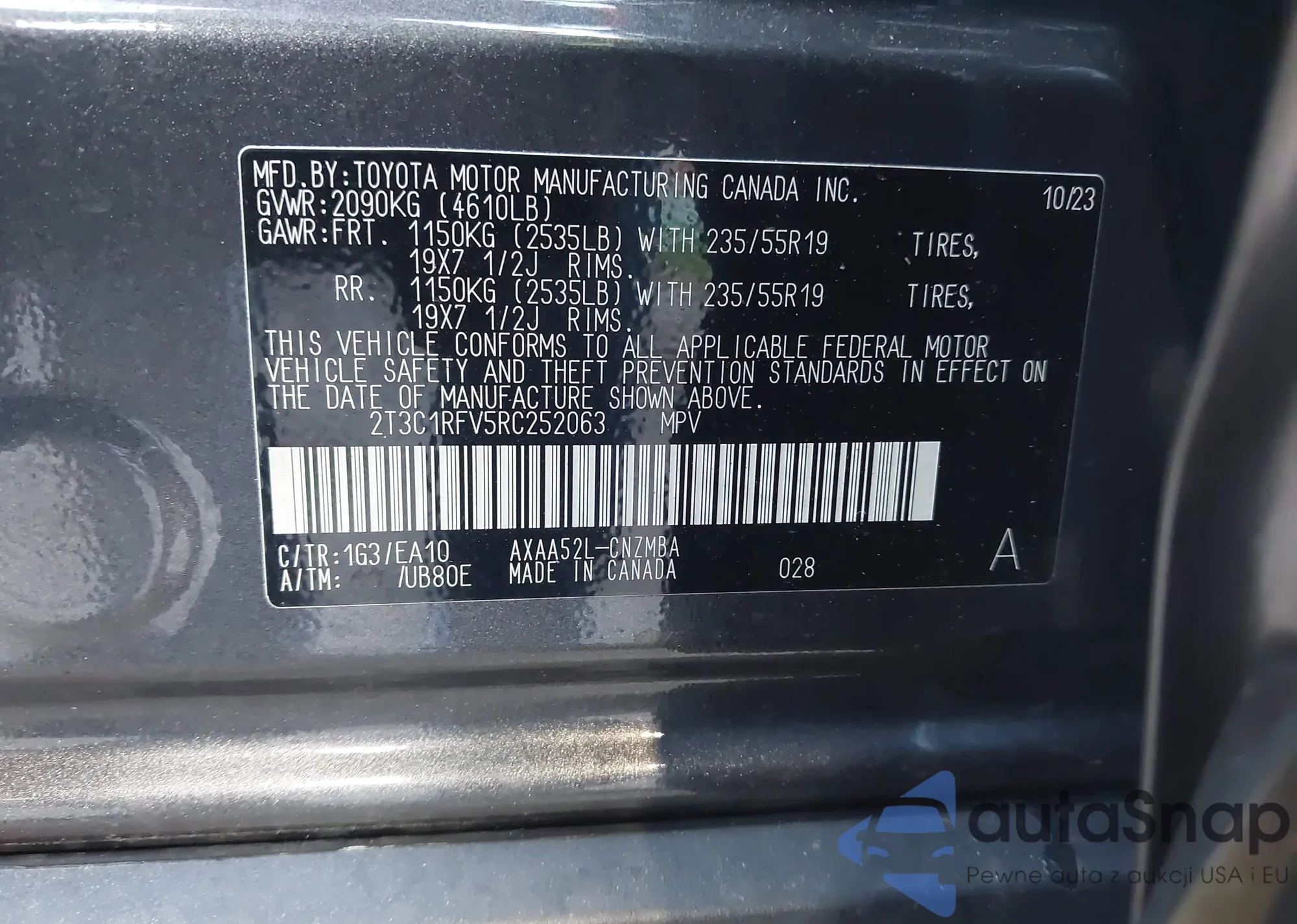 LOT: 41979994 VIN: 2T3C1RFV5RC252063