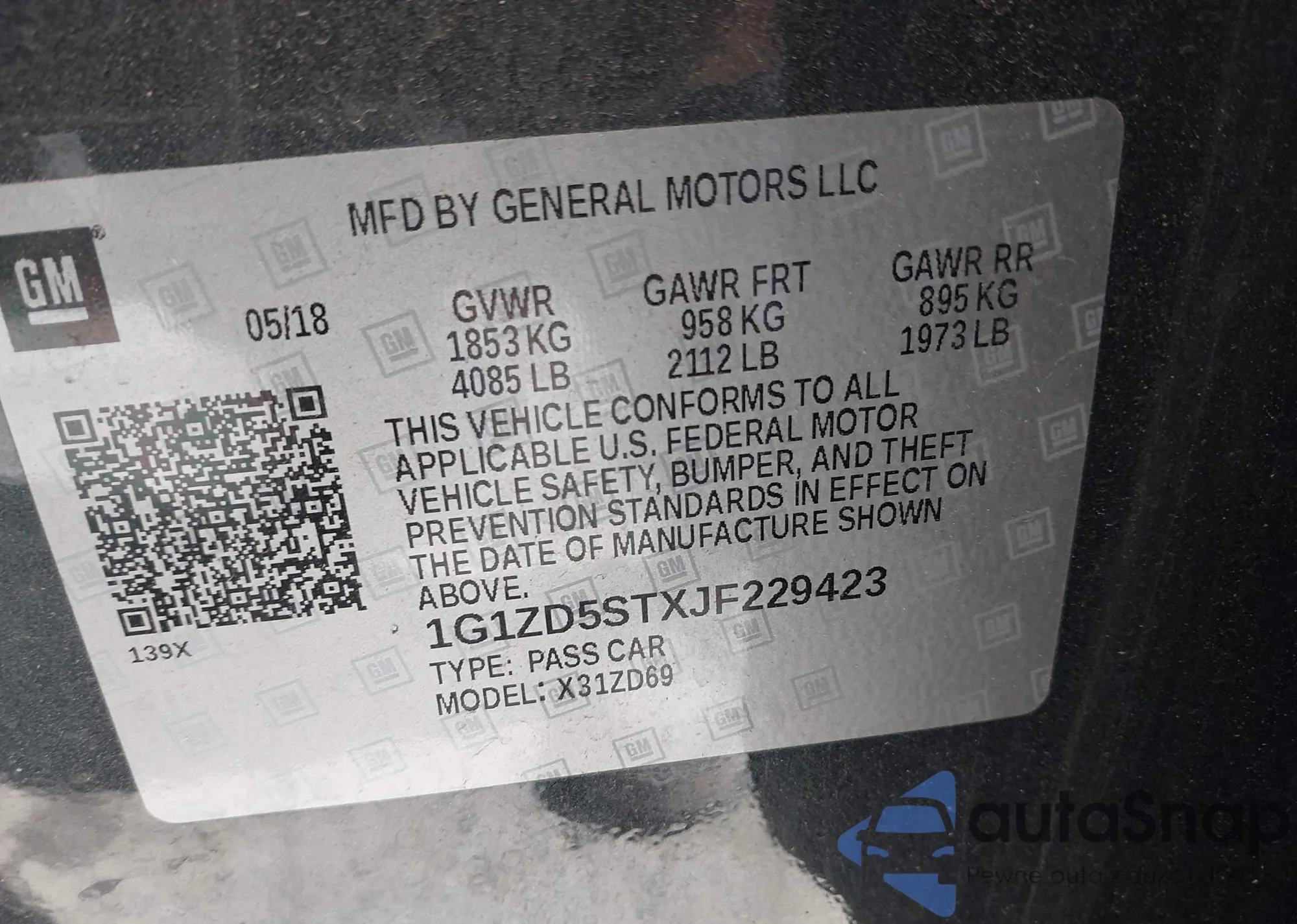 LOT: 41980157 VIN: 1G1ZD5STXJF229423