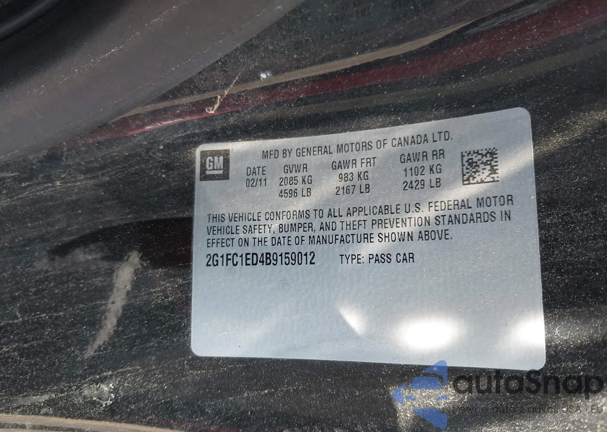 LOT: 42138289 VIN: 2G1FC1ED4B9159012