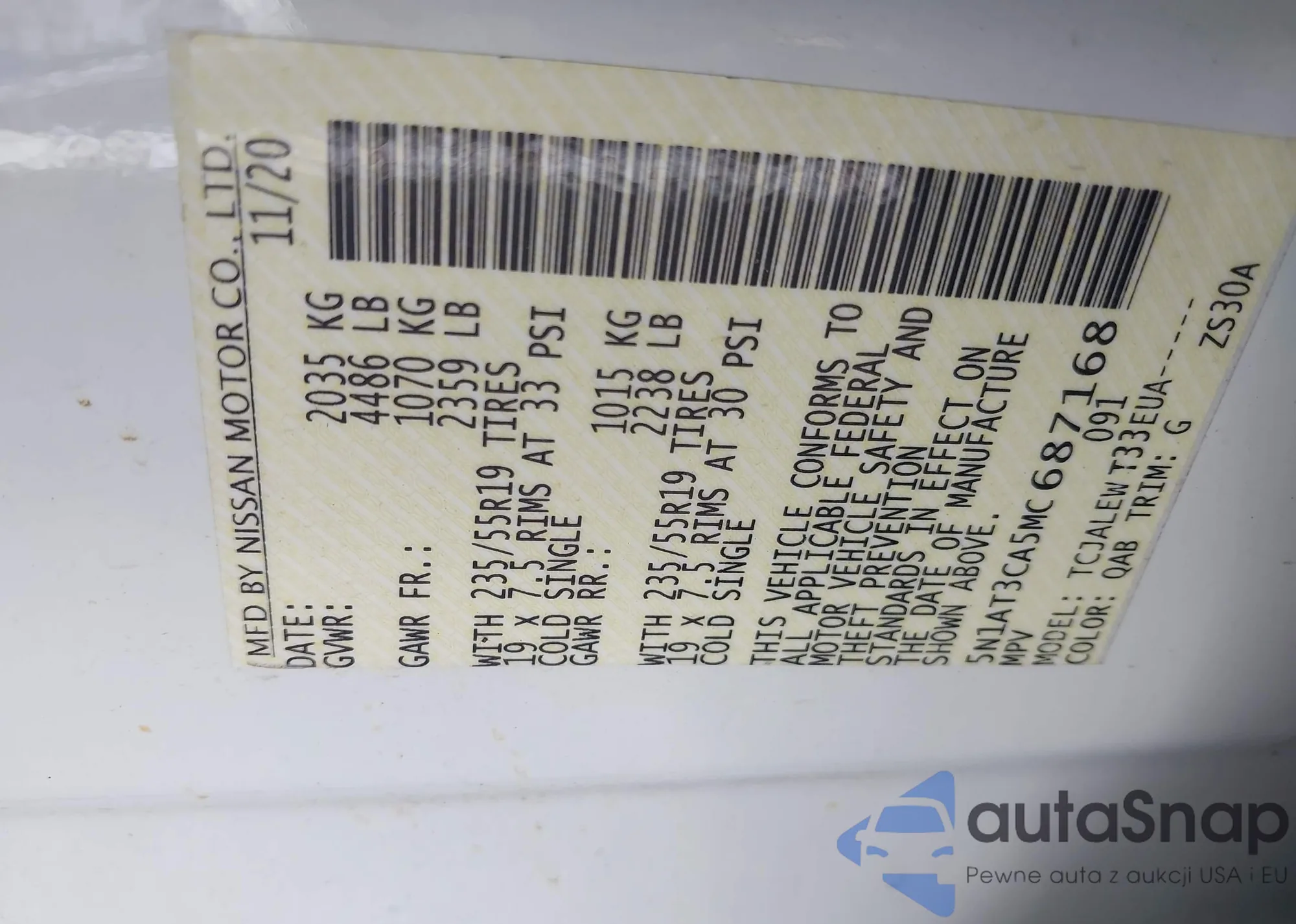 LOT: 41955856 VIN: 5N1AT3CA5MC687168