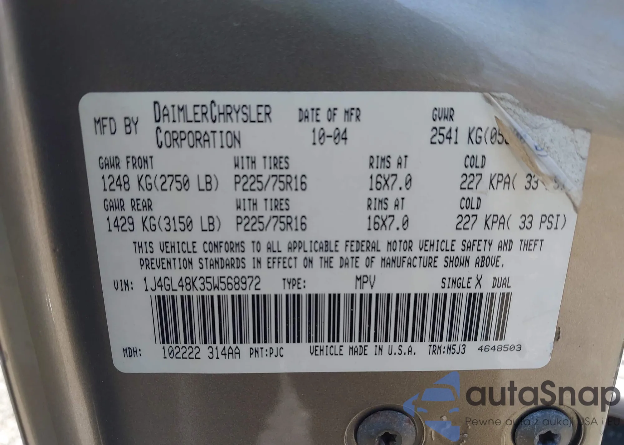 • VIN 3TMLU4EN5DM120294
