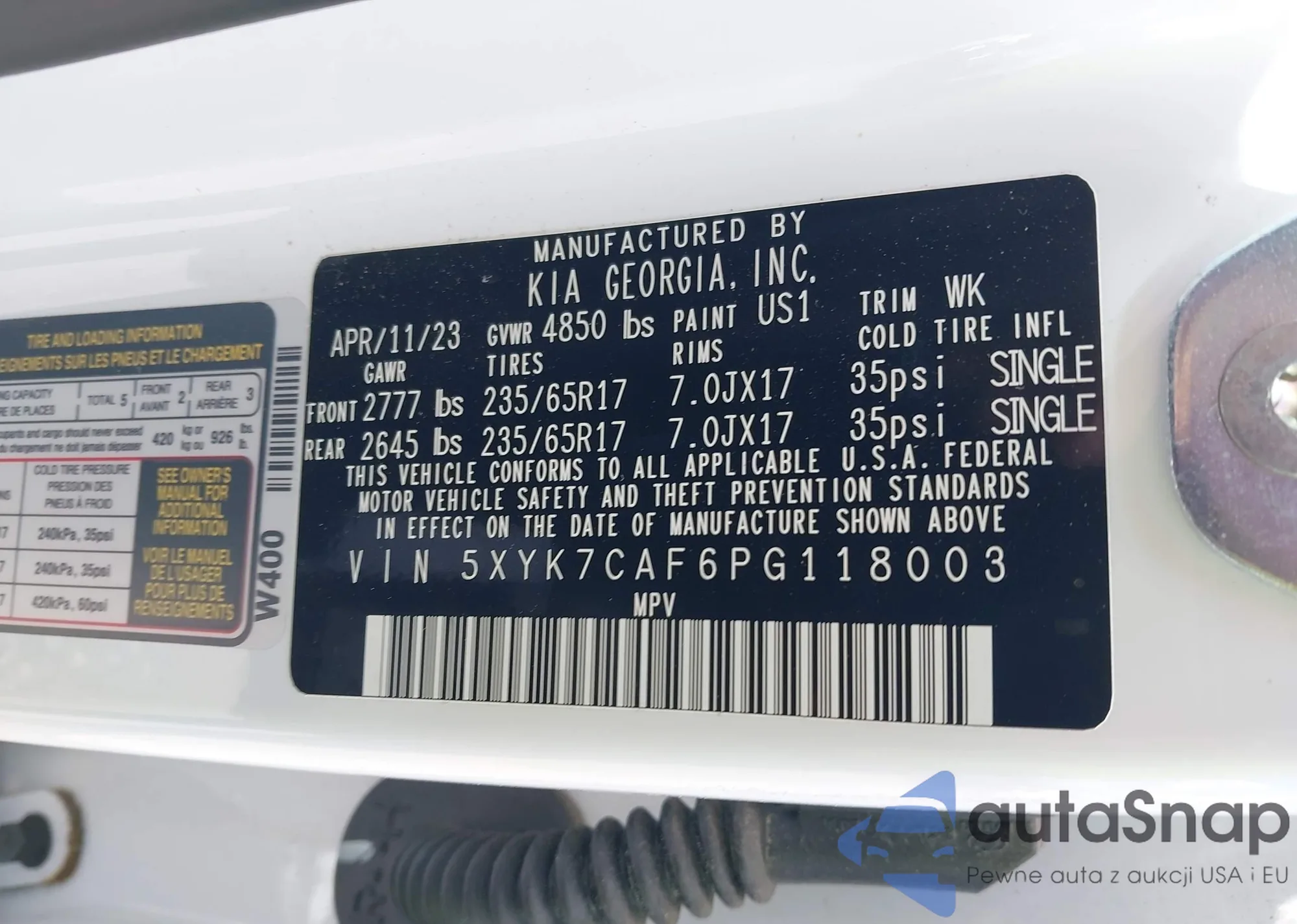 • VIN 5XYK7CAF6PG118003