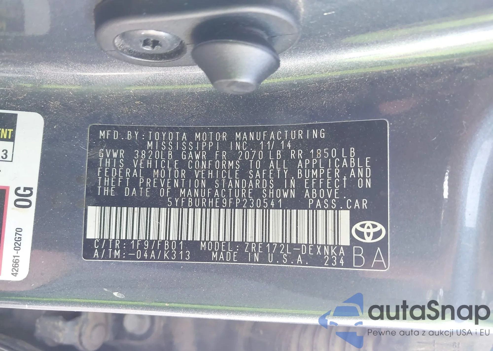 LOT: 42052802 VIN: 3TMLU4EN5DM120294