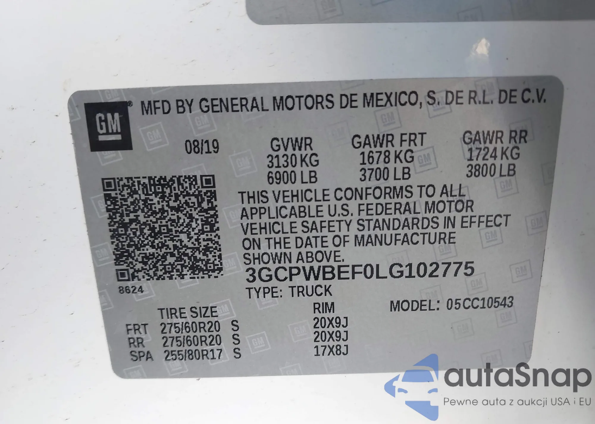 LOT: 42000380 VIN: 3GCPWBEF0LG102775