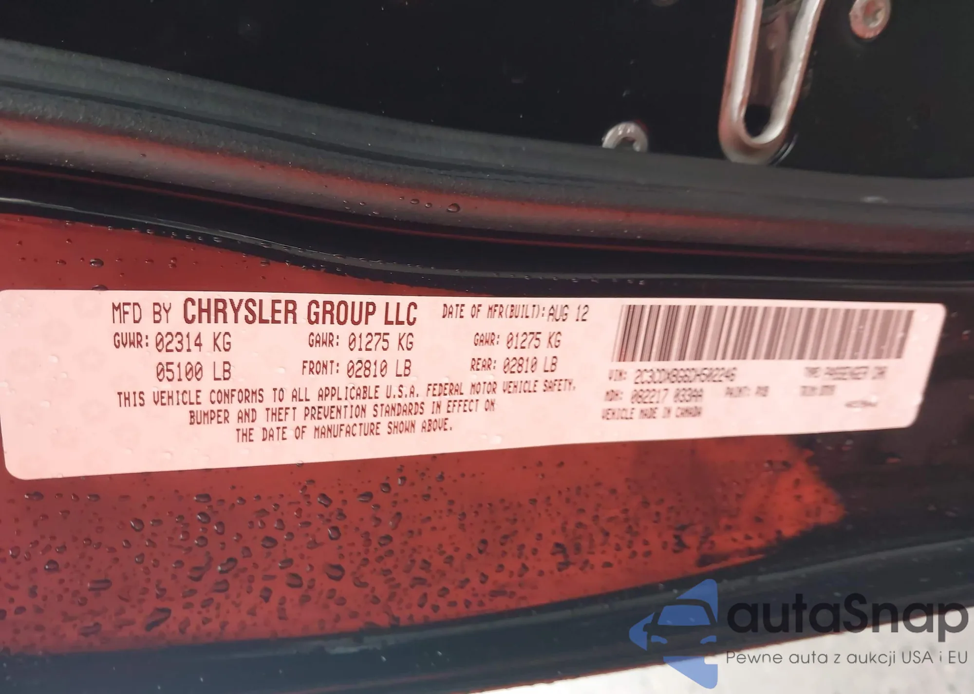 LOT: 42005260 VIN: 2C3CDXBG6DH502246