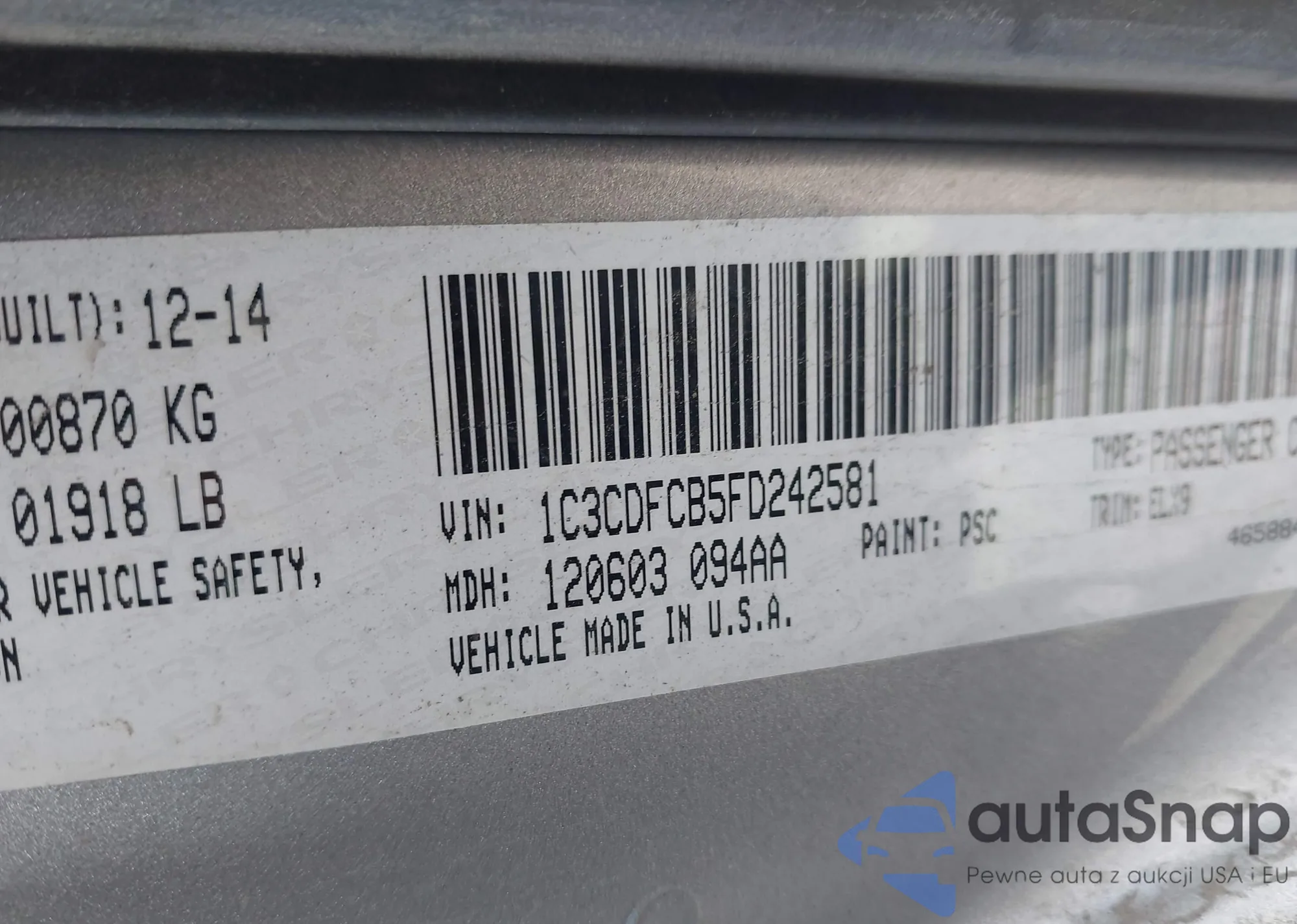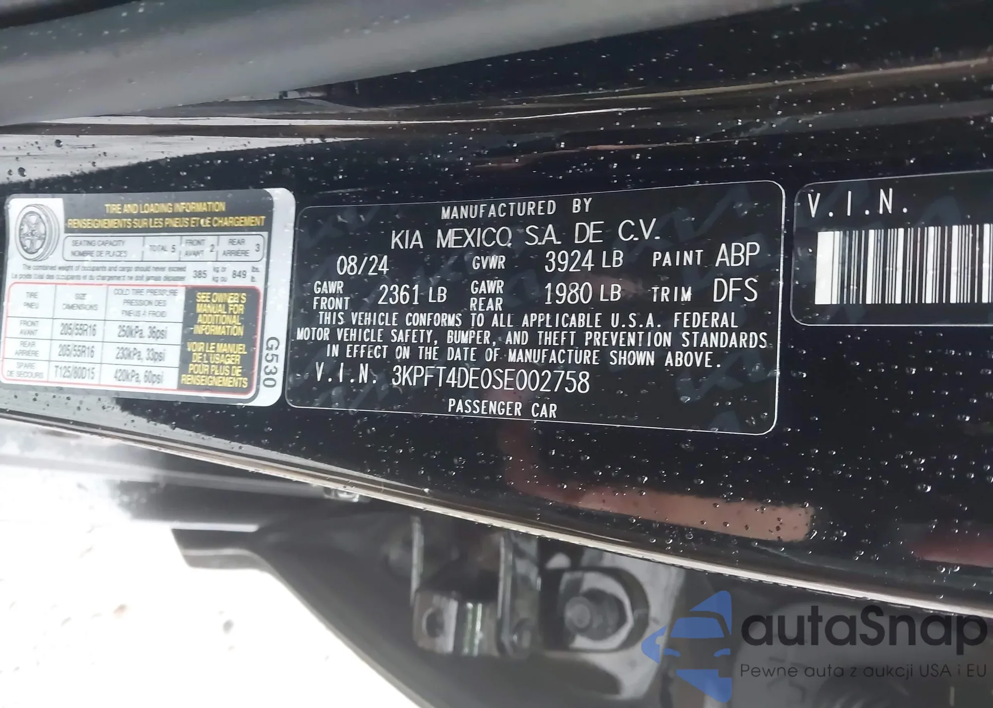 LOT: 42007108 VIN: 3KPFT4DE0SE002758