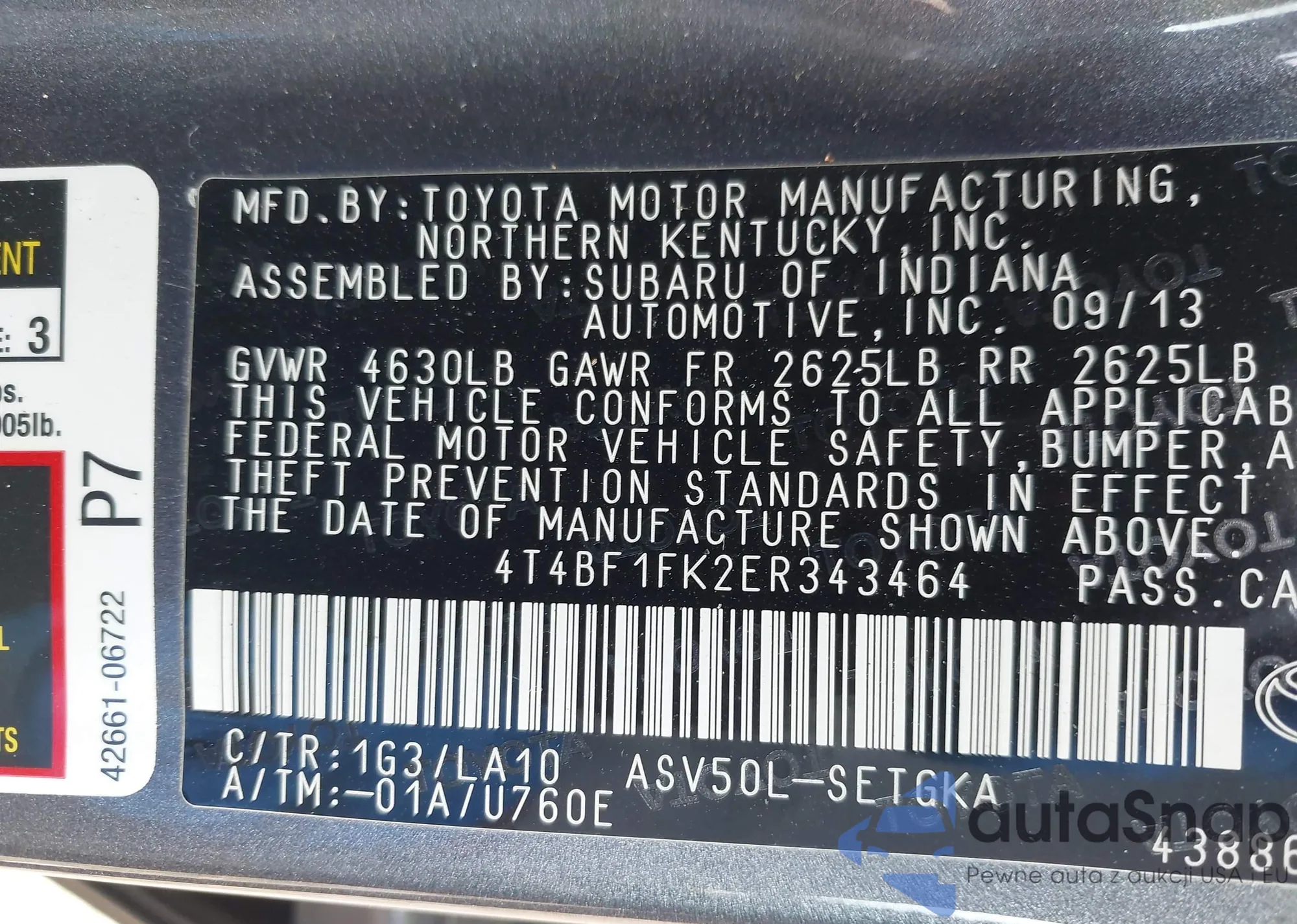 • VIN 4T4BF1FK2ER343464